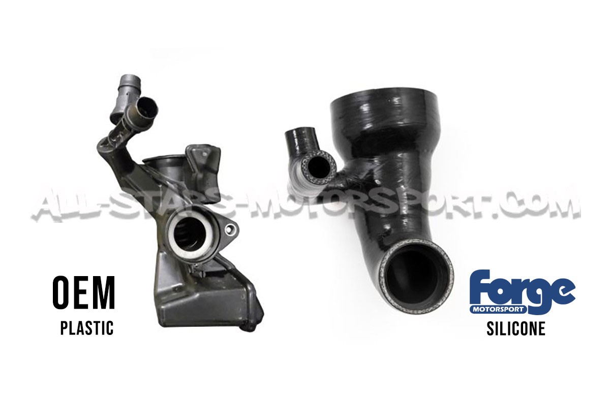 Este manguito de entrada de turbo Forge Motorsport, destinado a los motores 1.0 TSI de los Volkswagen UP GTI, se instala sin modificaciones para sustituir el elemento de serie, con el fin de optimizar los flujos de aire de admision. Compatible con la caja de aire estándar así como con las admisiones de alto rendimiento, esta manguera hecha de silicona multicapa tiene un volumen mayor que la manguera de plástico original, lo que permite una ganancia de 3 a 5 hp en un motor con stage 1.