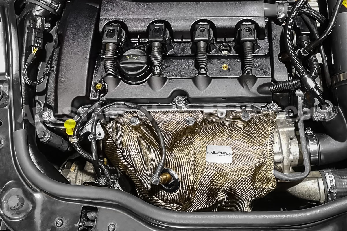 Esta manta térmica Alpha Competition se instala, sin ninguna modificación, alrededor de los turbos de los motores 1.6 THP de los Mini Cooper S R56 / Citroen DS3 / Peugeot 208 GTI para aislar al motor y, más particularmente, a la admisión de las radiaciones térmicas emitidas por el turbo. Fabricada con silicato de calcio, magnesio y fibras de carbono, esta manta de turbo está diseñada para soportar temperaturas extremas y para ser instalada sin necesidad de desmontar el turbo.