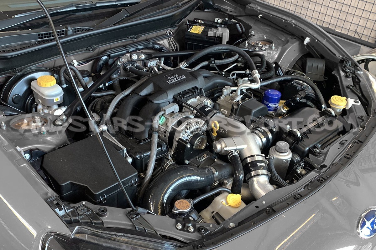 Los Toyota GT86 y Subaru BRZ tienen un chasis equilibrado, un aspecto agresivo, una posición de conducción deportiva y un sonido espectacular, pero el motor FA20 original muestra rápidamente sus límites con los 200cvs anunciados por el constructor. La solución definitiva para aquellos que deseen transformar por completo su BRZ o GT86 la ofrece HKS a través de este kit compresor GT2 Pro Kit. Entregado completo y listo para instalar, este kit compresor HKS permitirá que el boxer de 2.0L alcance los 300cvs y los 32 mkg mientras mantiene una comodidad de conducción óptima, una excelente confiabilidad y una apariencia particularmente discreta con el uso de la caja de aire de serie. Para un rendimiento óptimo, se recomiendan varias actualizaciones tal como una bomba de gasolina, inyectores y escape pero será obligatoria la revisión de la electrónica.