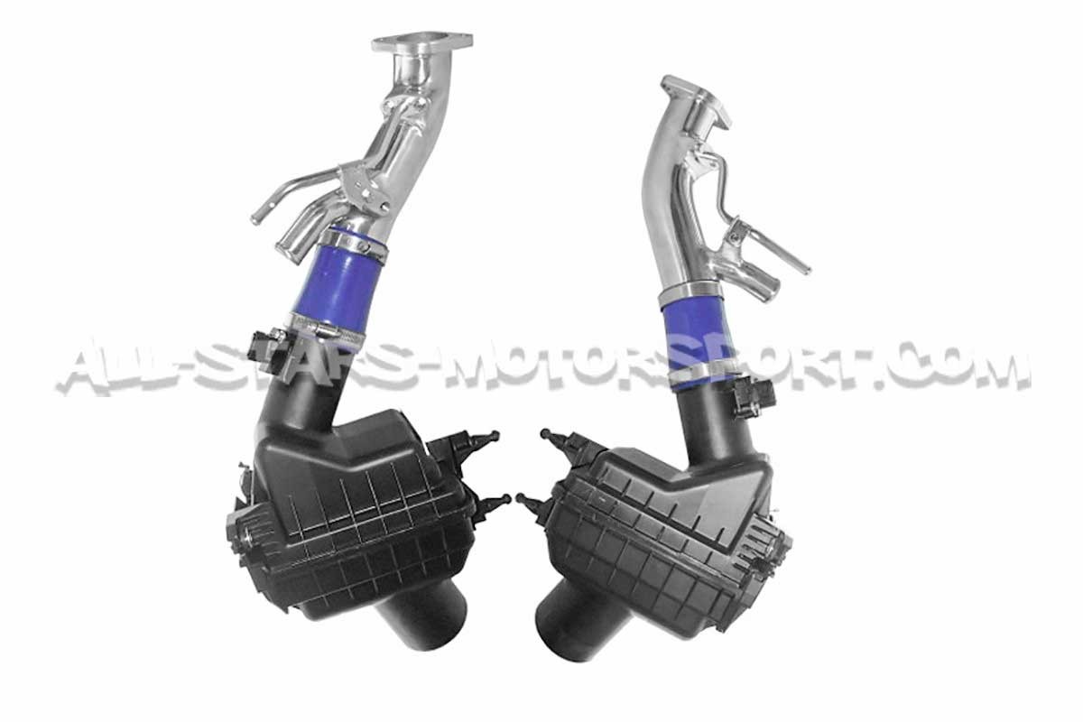 Destinado a los motores VR38DET de los Nissan R35 GTR, este kit de admisión HKS Premium Suction está compuesto por filtros de aire deportivos Super Hybrid colocados en las cajas de aire originales, tubos de admisión de aluminio pulido de gran volumen, manguitos de silicona y el kit de instalación completo. Evolución simple, confiable, eficiente y asequible, el sistema HKS Premium Suction es la opción ideal para aquellos que buscan una ganancia de rendimiento sin modificaciones excesivas.
