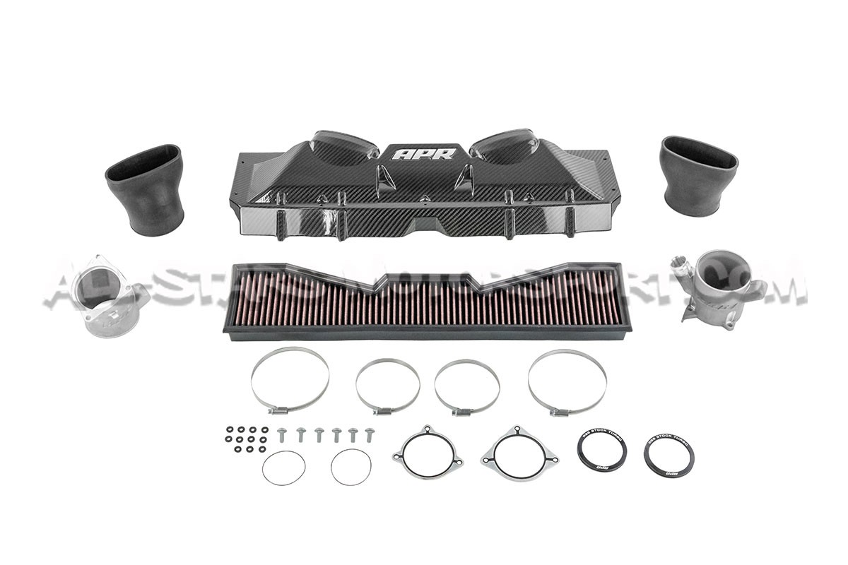 Esta admisión APR, fabricada en fibra de carbono, se instala sin modificaciones desde los turbos en los motores 4.0 TFSI de los Audi RS6 C8 y Audi RS7 C8. Con un 52% más de flujo de aire que el elemento de serie, este sistema compuesto por una tapa de caja de aire de carbono, 2 tubos inlet de admision de aluminio, un filtro de algodón lavable y el kit de montaje completo, propociona una ganancia de 47cvs en un motor con stage 1.