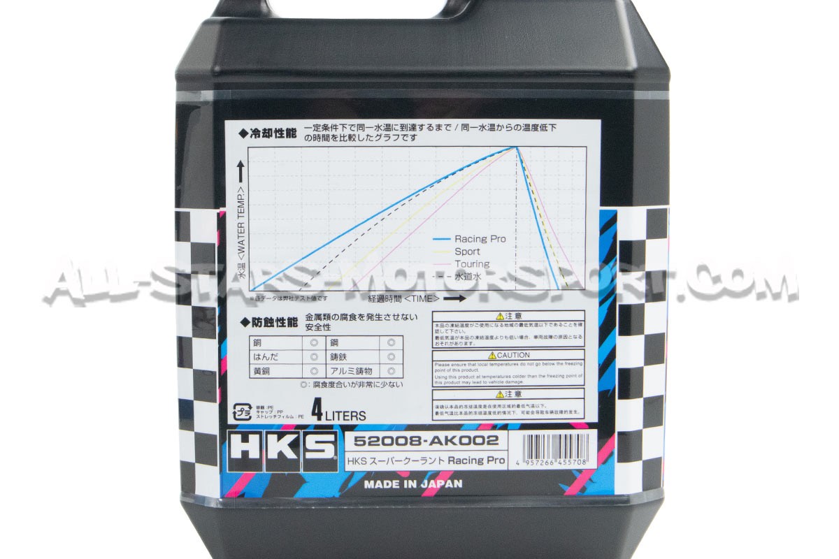 Fabricado con componentes orgánicos para una eficiencia y fiabilidad excepcional, el refrigerante HKS Super Coolant ha sido diseñado específicamente para vehículos de alta potencia y/o uso intensivo. Disponible en versión Racing para uso en pista con una temperatura mínima soportable de -1°C y una disipación de calor colosal, el Super Coolant de HKS también está disponible en versión Sport para uso en carretera con una alta disipación de calor pero una temperatura mínima soportable de -18 ºC. Considerado el mejor refrigerante del mundo, Super Coolant se envasa en latas de 4L y dispone de una vida útil de 2 años.