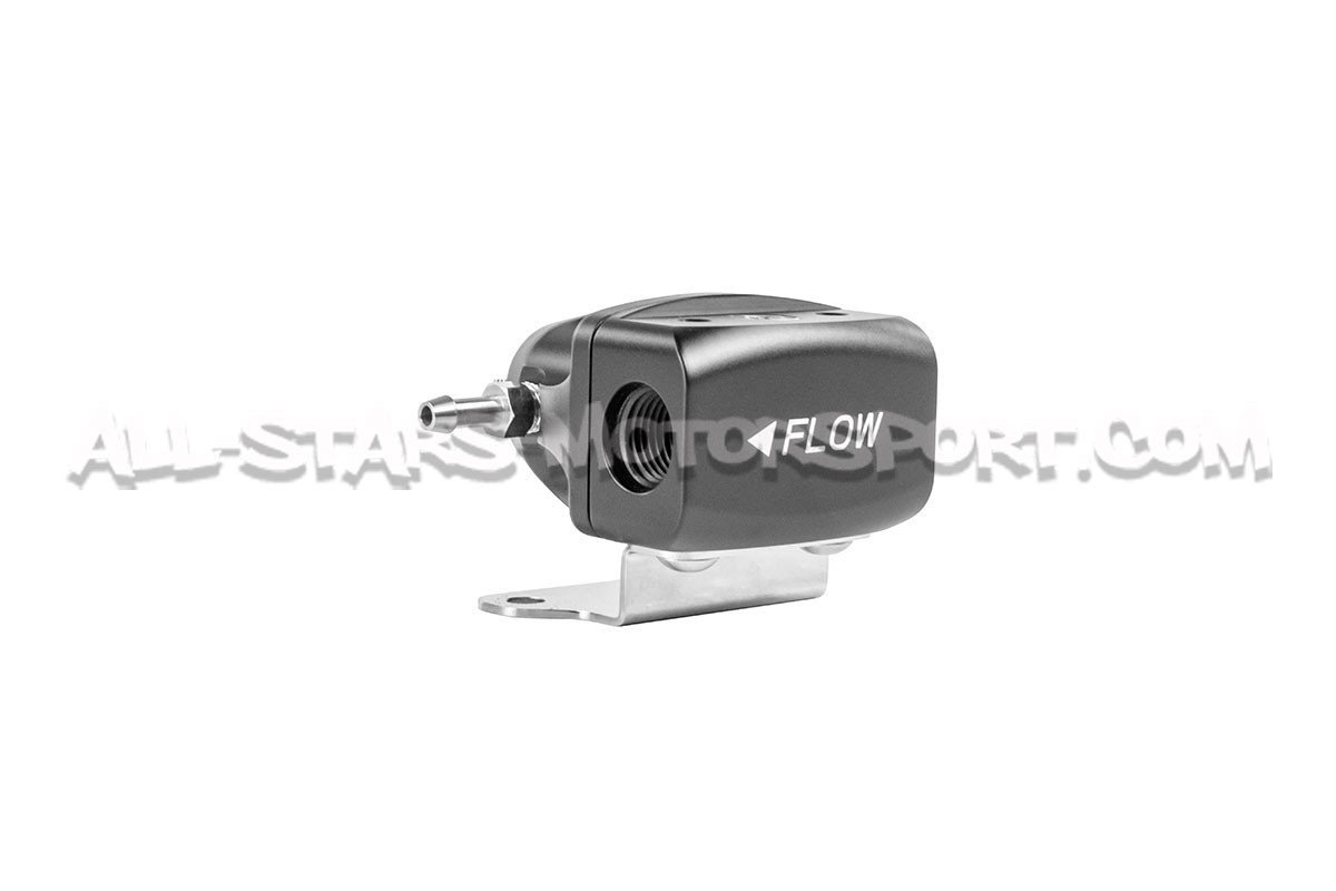 Este regulador de presión de combustible universal Deatschwerks DWR1000iL es a la vez compacto, eficiente y estético. Con una entrada y una salida 6-AN y un puerto de 1/8 NPT para manómetro, este regulador fabricado en aluminio T6061 anodizado negro puede soportar potencias de hasta 1000cv con un caudal de 500L / H y una presión regulable de 2 a 6,9 bares.