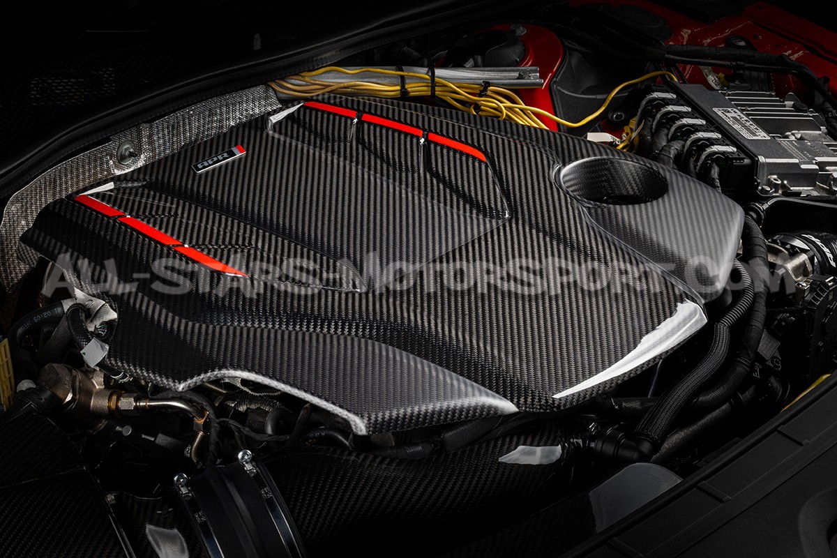 Esta tapa de motor APR, fabricada en fibra de carbono, tiene un acabado brillante con inserciones rojas en la parte central y un acabado mate en los laterales para integrarse a la perfección con la firma estética del vano motor de los Audi S4/RS4 B9 y S5/RS5 8F. Reemplazo directo de la tapa del motor que equipa de serie las motorizaciones 3.0 TFSI y 2.9 TFSI EA839, este accesorio de APR es un 32% más ligero y se adaptará perfectamente a un motor original o como complemento al sistema de admisión de la marca.