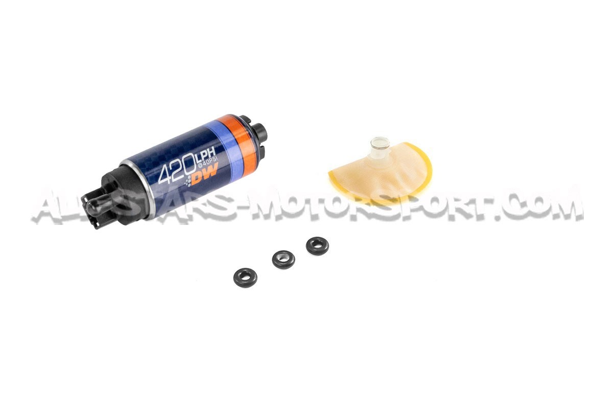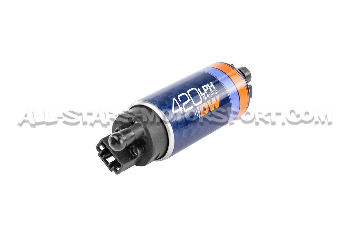 Reemplazo directo de la bomba de combustible original de los Nissan 350Z, los kits de Deatschwerks incluyen una bomba DW200, DW300 o DW400, capaz de entregar silenciosamente de 255 a 420 litros por hora, así como el material de instalación. Con un cuerpo que tiene el tamano estándar de las bombas sumergibles de la marca, es decir, 123mm x 39 mm, este kit específico responderá sin problema a cualquier tipo de preparación desde la más sencilla a la más avanzada, sea cual sea el combustible utilizado.