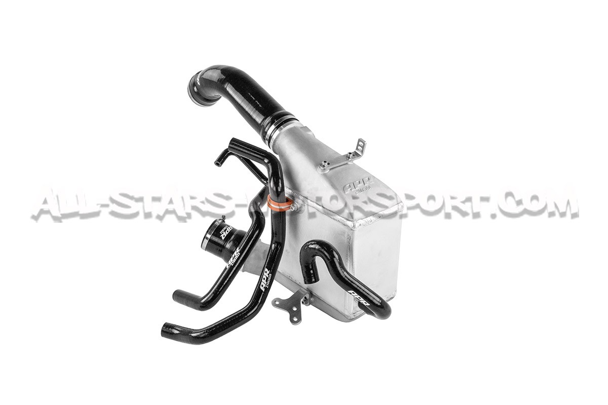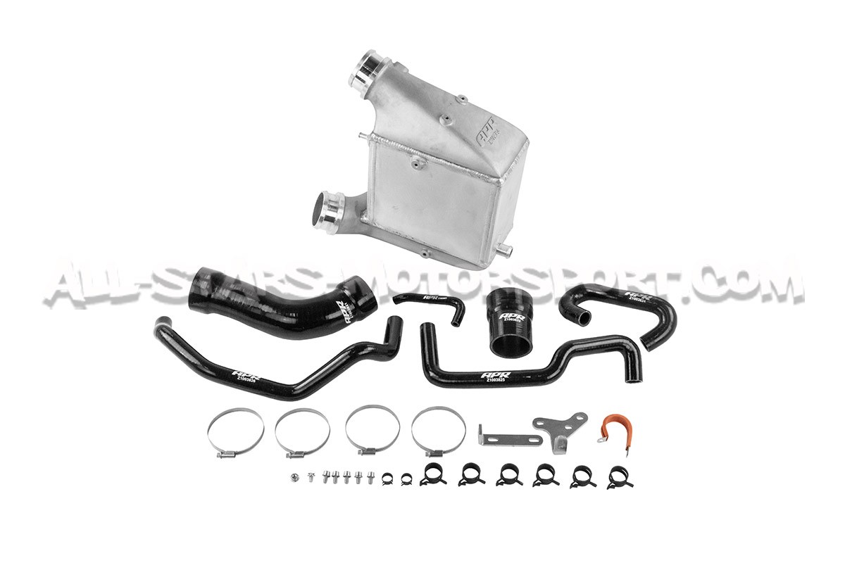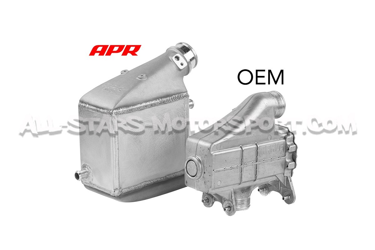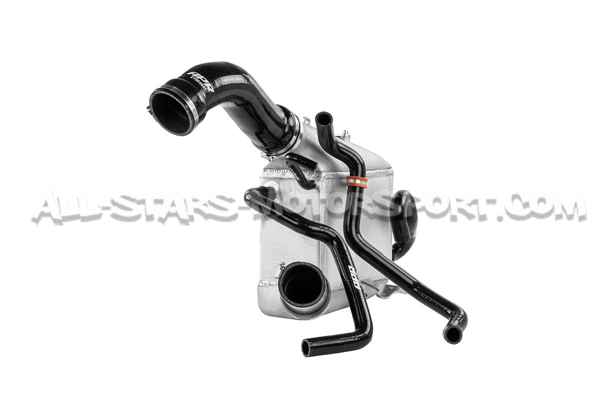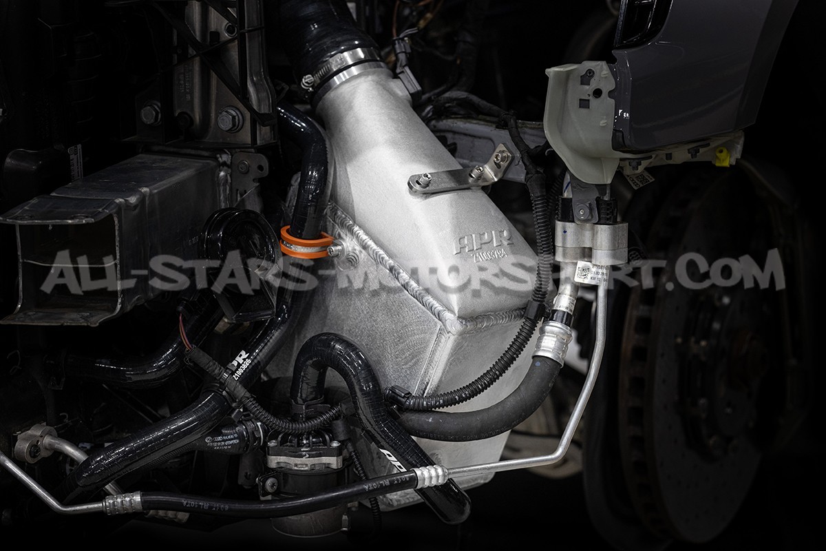 Este kit intercambiador de gran volumen APR, fabricado en aluminio de alta calidad, se instala sin modificaciones en los motores 2.9 TFSI de los Audi RS4 B9 y Audi RS5 F5 para optimizar las temperaturas de admisión. Con un volumen un 194% mayor que el original, este intercambiador aire-agua APR se entrega con sus mangueras de silicona reforzadas en color negro, su kit de montaje e instrucciones de instalación.