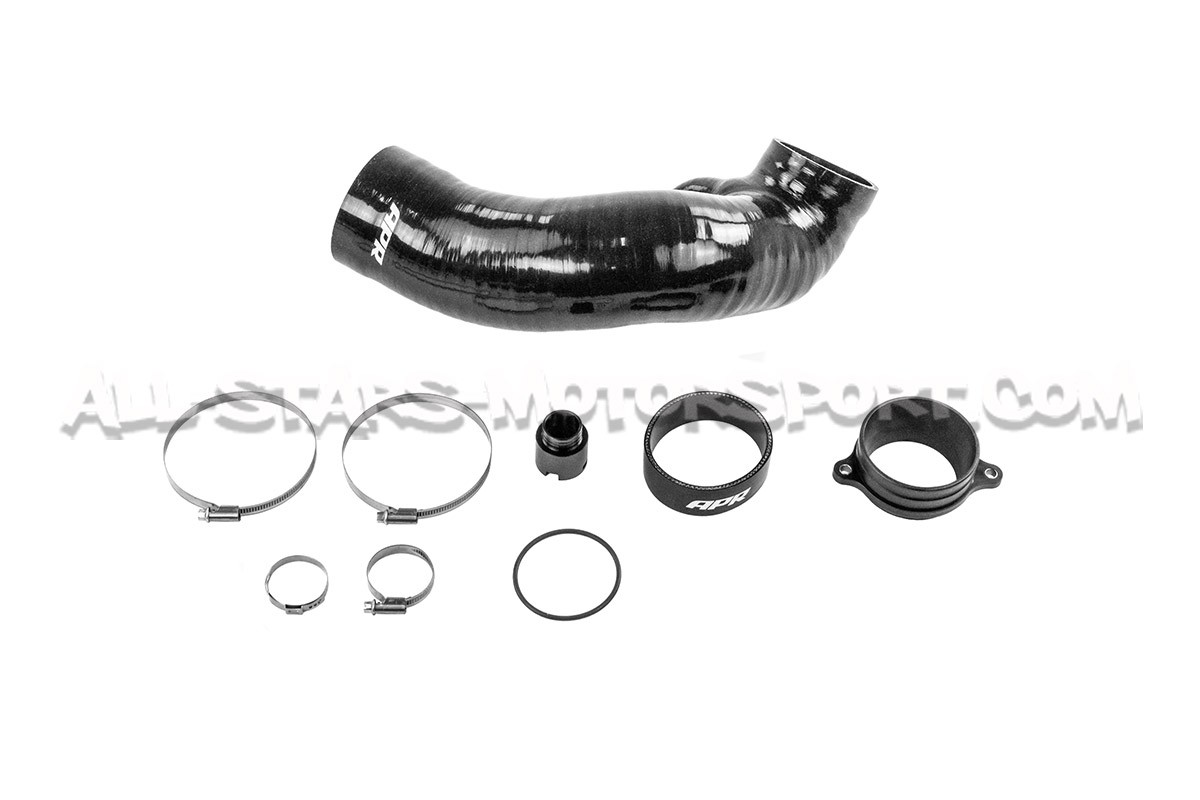 Este kit inlet de turbo de APR consta de un adaptador de entrada turbo de Polietileno, una manguera de silicona de gran volumen y los accesorios de montaje que permiten una instalacion directa, entre el turbo y la caja de aire de los motores 2.0 TFSI EA888.4, equipando entre otros los Audi S3 8Y / Golf 8 R / Cupra Formentor. Con un acabado negro muy discreto y un volumen un 30% mayor que los elementos estándar, este conjunto proporcionará el flujo de aire necesario para cualquier tipo de preparación, utilizando la caja de aire estándar o una admision de alto rendimiento.