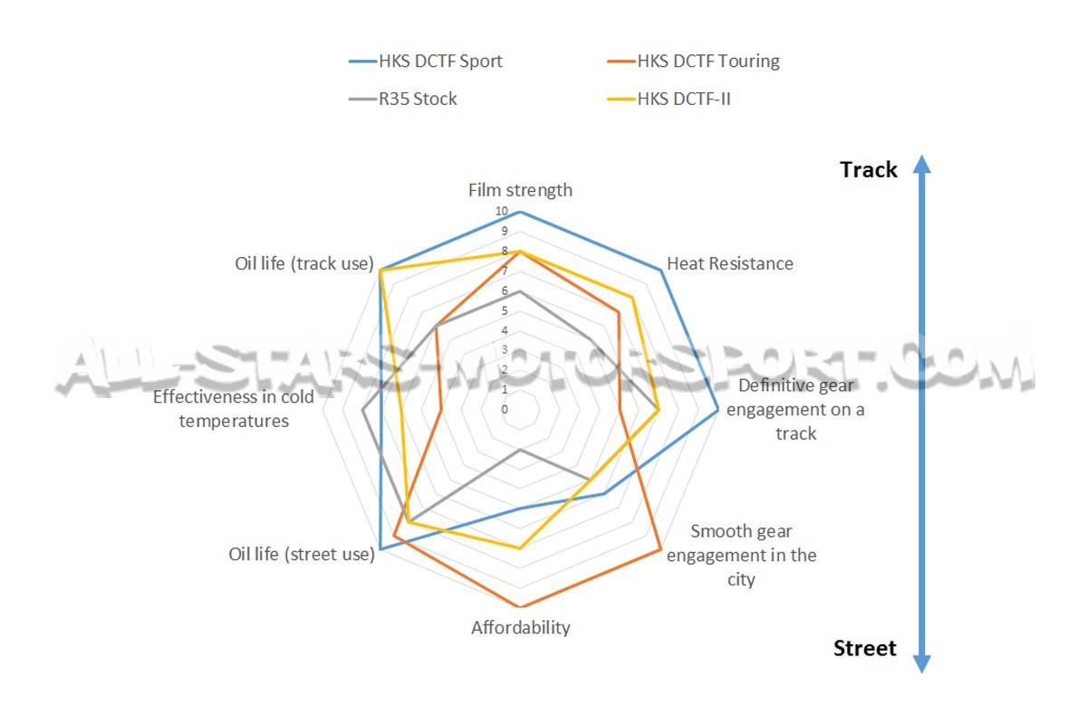 El líquido de transmisión de alto rendimiento HKS DCTF está disponible en versión Touring o en versión Sport para satisfacer las necesidades de cada usuario. La versión Touring está destinada a un uso deportivo en carretera para vehículos de serie o ligeramente modificados (transmisión de serie), ofreciendo comodidad de conducción y fiabilidad en todo tipo de recorridos. Proporcionando una excelente resistencia al calor y a la presión, la versión Sport está destinada a un uso intensivo y/o vehículos con potencias importantes y/o transmisiones reforzadas. Ampliamente utilizado en las cajas de cambios GR6 de los Nissan R35 GTR, este aceite de caja HKS DCTF también es compatible con las transmisiones de doble embrague de BMW, Porsche, Mercedes Benz y Audi/VW.