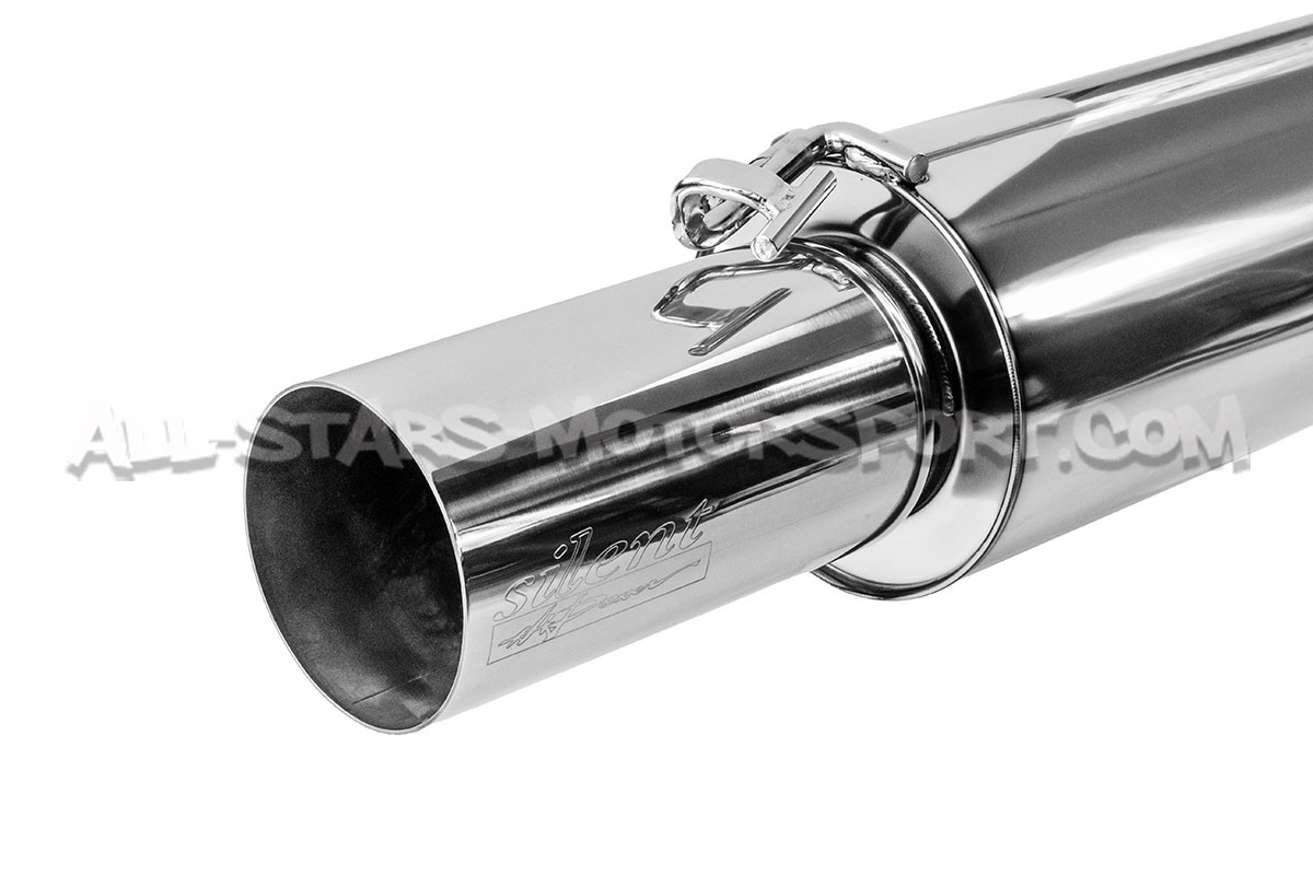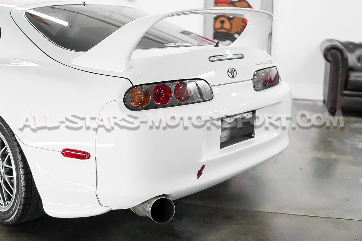 El escape HKS Silent Hi Power para Toyota Supra MK4 se instala sin modificacion desde el front pipe para proporcionar un sonido agresivo bajo carga pero relativamente cómodo a velocidad constante. Con una estructura de acero inoxidable S304 de alta calidad, este escape de 95mm de diámetro lleva una cola pulida de 120mm que encaja perfectamente en el parachoques trasero de serie
