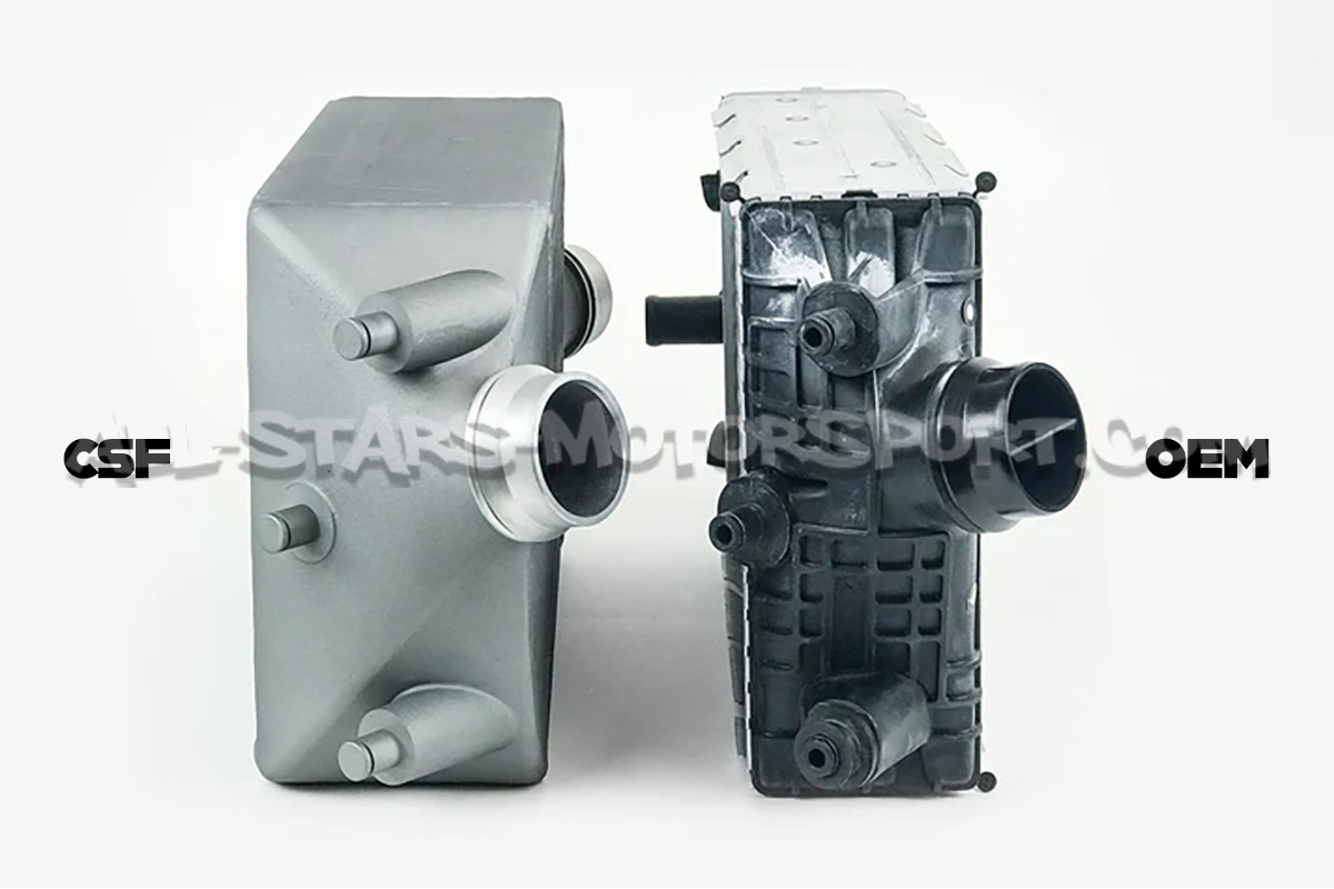 Este kit de 2 intercoolers de gran volumen CSF se instala sin ninguna modificación como sustitución directa de los originales en los Porsche 911 991 Turbo y Turbo S. Diseñados para soportar niveles de potencia extremos, estos intercambiadores, que cuentan con un volumen significativamente mayor que de serie, optimizarán las temperaturas de admisión y ofrecerán un importante aumento de potencia en cualquier nivel de preparación. Fabricados en aluminio de alta calidad, con una estructura bar & plate y un revestimiento térmico específico, estos intercoolers se sitúan sin duda entre los más eficientes del mercado tanto para uso en carretera como en pista.