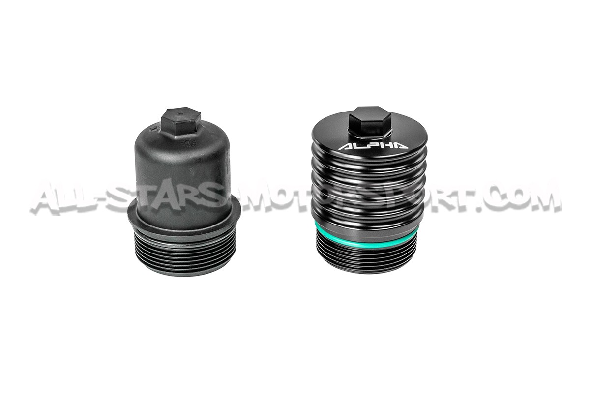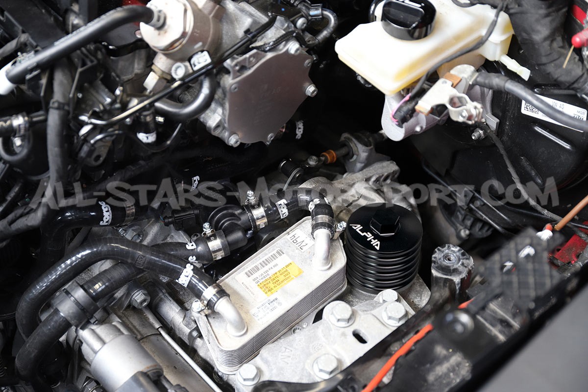 Esta cubierta para filtro de aceite para las cajas de cambios DSG DQ250 (DSG-6) / S Tronic está fabricada en aluminio 6061-T6 de alta calidad para proporcionar una protección térmica óptima y una vida útil mucho más larga que la tapa de plástico de serie. Con un acabado en negro elegante y discreto, esta carcasa de filtro DSG Alpha Competition se instala sin modificaciones en un gran número de vehículos del grupo VAG como los Golf 5/6/7, Audi S3 8P / 8V, Seat León 1P / 5F, Skoda Octavia ...