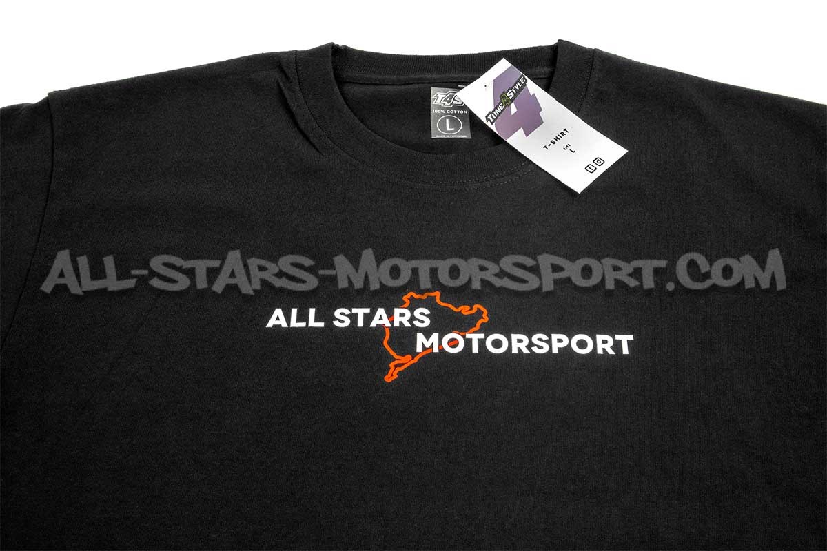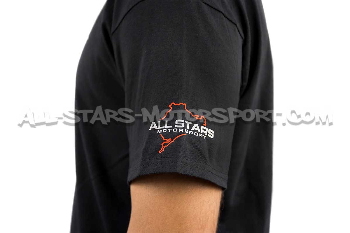Disponible du S au 2XL, ce T-shirt fabriqué en cotton haute qualité (180grs) par T4S au Portugal, reprend le design officiel All Stars Motorsport.