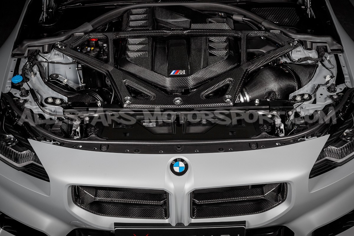 Cette barre anti-rapprochement supérieure avant Eventuri, fabriquées en fibre de carbone finition brillante ou mate, s'installe sans modification sur les BMW M3 G80, M4 G8x et M2 G87 afin de rigidifier legèrement le train avant, tout en apportant une touche d'elegance et d'exclusivité au comportiment moteur. Livré pret à installer, cette barre de renfort est livrée avec son kit de montage complet comprenant la visserie en inox SS316.
