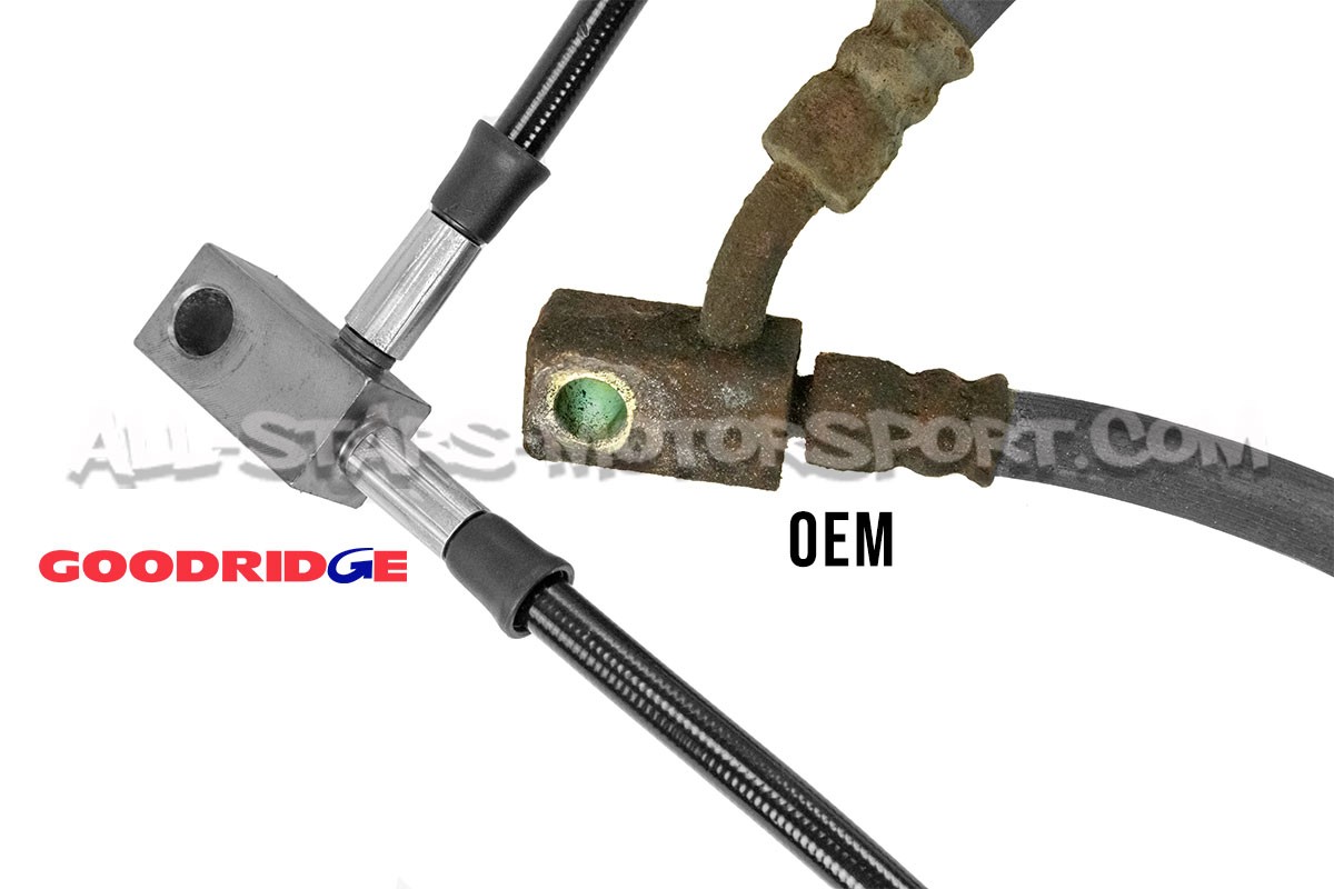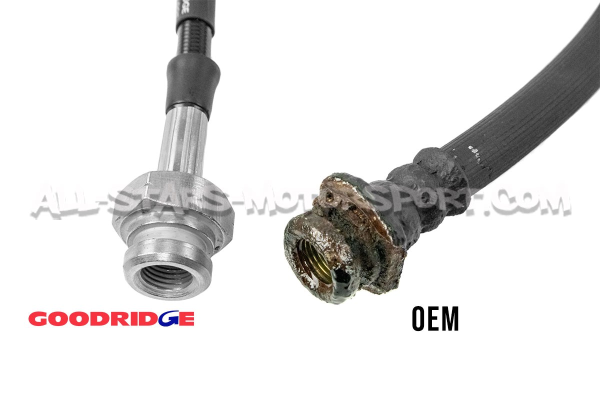 Fabriqués au Royaume Uni, les flexibles de frein aviation Goodridge s'installent sans modification afin de maintenir en toute situation une pression optimale dans le circuit de freinage de votre Nissan 350Z. Kit complet avant et arrière, comprenant les accessoires de montage et disponible en 4 coloris, ces flexibles en inox tressé apporteront une endurance sans égal a votre freinage !