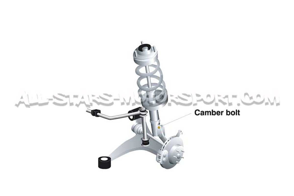 Fiable, efficace et simple à installer, ce kit de vis d'amortisseurs excentrées Whiteline permet de régler de +/- 1.5° le carrossage avant des Toyota Yaris GR pour une efficacité optimale du train avant !