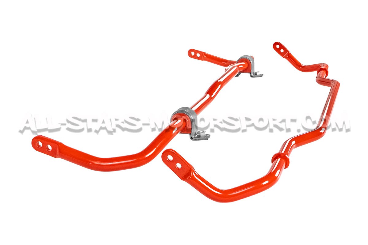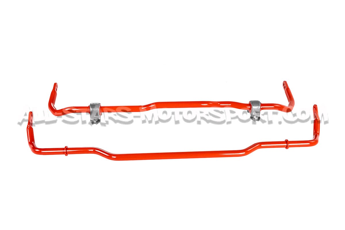 S'installant sans aucune modification sur les A3 8P / Golf 5 GTI / Golf 6 GTI / Leon 2 Cupra 2WD, ce kit de barres antiroulis avant / arrière Eibach en 26mm et 23mm de diamètre est ajustable sur 2 positions afin de permettre un réglage précis de la dureté. Fabriquées en acier haute densité, ces barres anti-devers Eibach permettront de diminuer les mouvements de caisse latéraux tout en apportant un comportement plus sportif et plus efficace au véhicule.