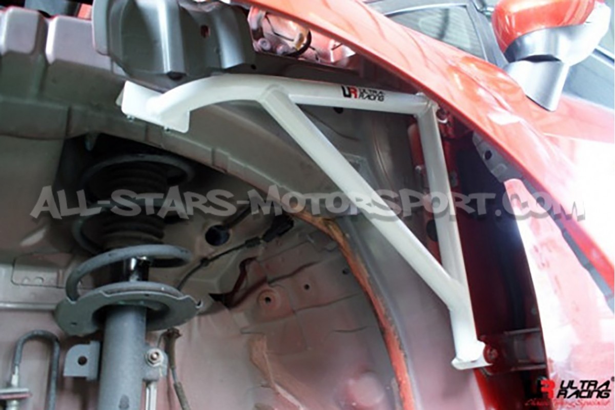 S'installant sans aucune modification afin de rigidifier le châssis des Ford Fiesta ST MK7, ces barres de renfort d'ailes avants 3 points Ultra Racing disposent d'une structure en acier haute densité résistant à des contraintes extrêmes et d'une finition blanche très qualitative.