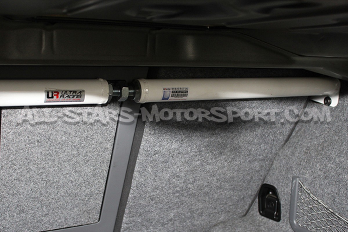 S'installant sans aucune modification afin de rigidifier le train arrière des BMW 335i E92 / M3 E92, cette barre anti rapprochement supérieure arrière 2 points Ultra Racing dispose d'une structure en acier haute densité résistant à des contraintes extrêmes et d'une finition blanche très qualitative.