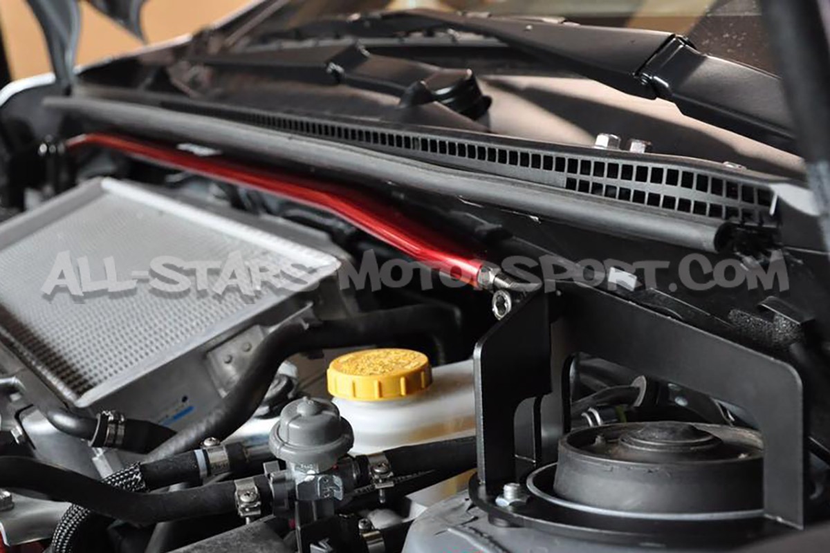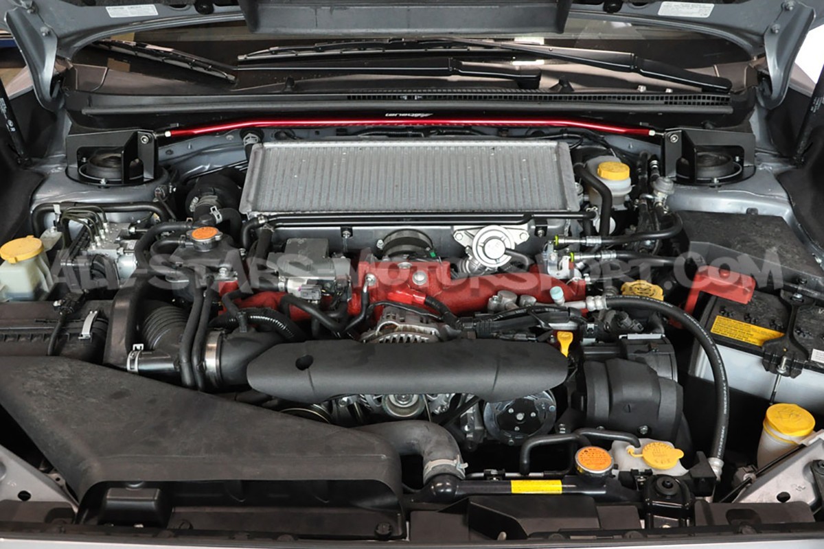 Cette barre anti-rapprochement supérieure avant Tanabe Sustec, fabriquée en aluminium haute qualité, s'installe sans modification sur les Subaru Impreza STI 08-14 afin de rigidifier le train avant et d'apporter une touche colorée à la baie moteur grace à sa finition rouge Alumite.
