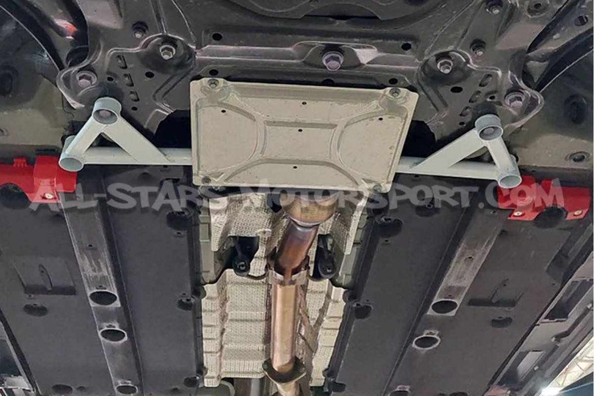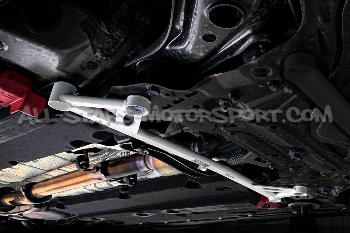 S'installant sans aucune modification afin de rigidifier le train avant des Toyota Yaris GR Gen.1, cette barre de renfort inférieure 4 points Ultra Racing pour berceau avant dispose d'une structure en acier haute densité résistant à des contraintes extrêmes et d'une finition blanche très qualitative.