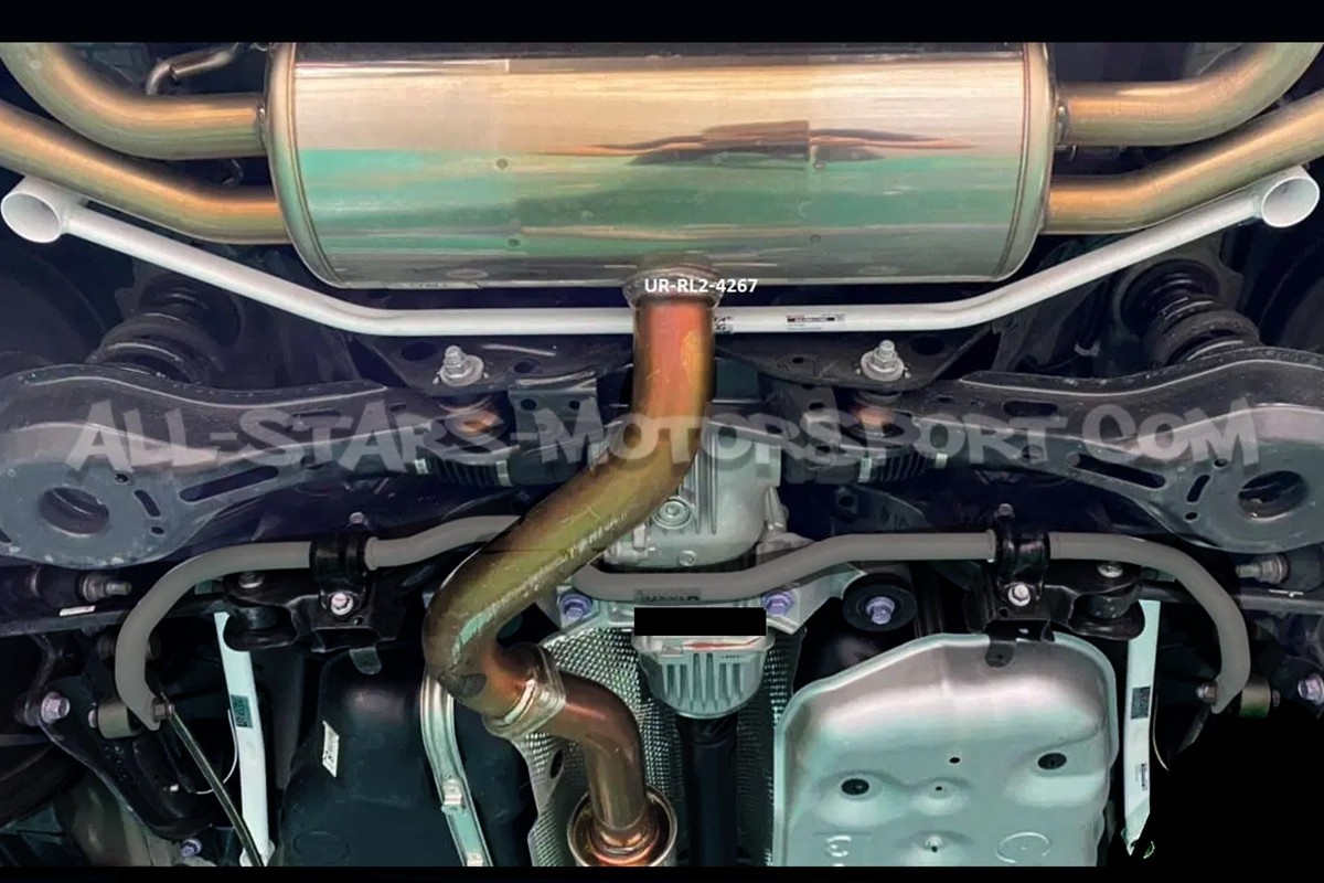 S'installant sans aucune modification afin de rigidifier le train arrière des Toyota Yaris GR Gen.1, cette barre de renfort inférieure arrière 2 points Ultra Racing dispose d'une structure en acier haute densité résistant à des contraintes extrêmes et d'une finition blanche très qualitative.