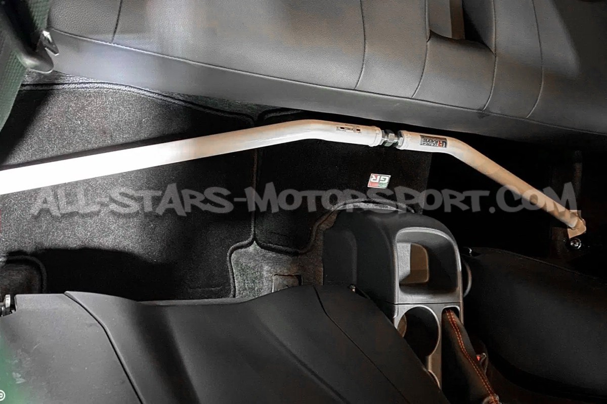 S'installant sans aucune modification afin de rigidifier le chassis des Toyota Yaris GR Gen.1, cette barre d'habitacle transversale 2 points également appelée room bar Ultra Racing, dispose d'une structure en acier haute densité résistant à des contraintes extrêmes et d'une finition blanche très qualitative.