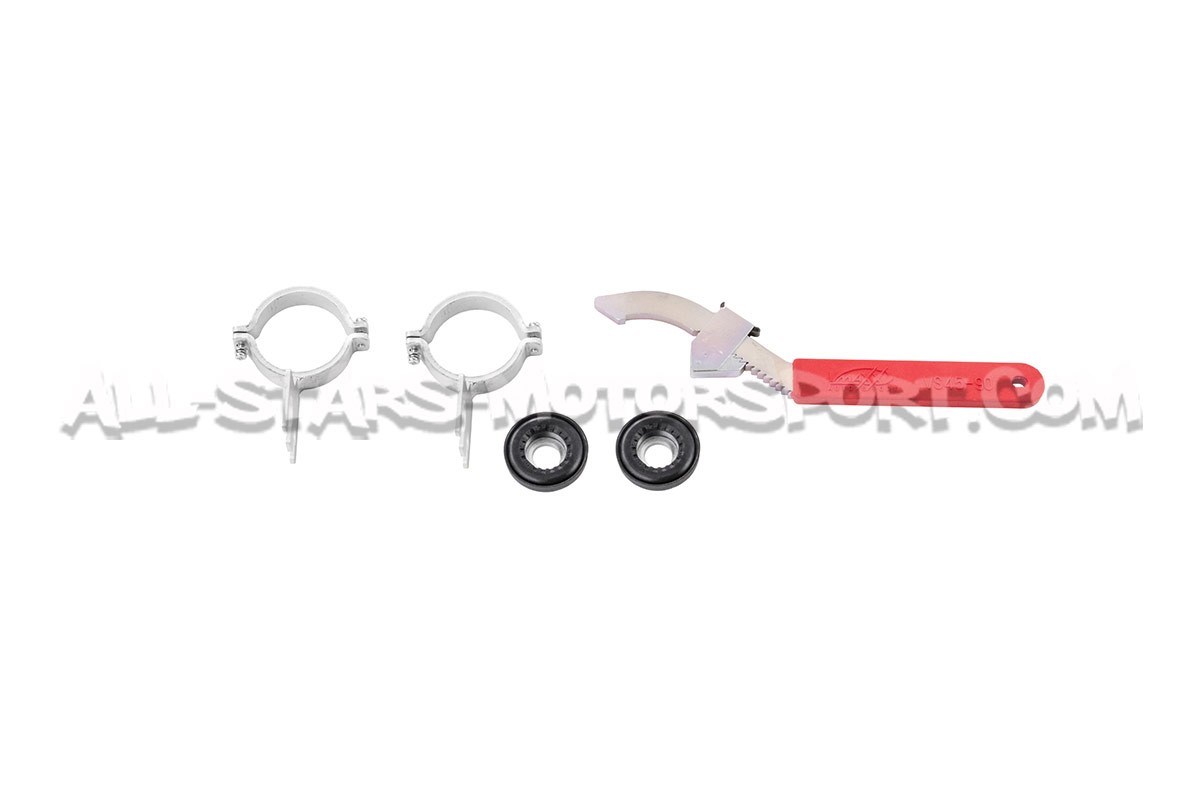 Ce kit de suspension combinés filetés V-MAXX disponible en version X-Street ou X-Sport, destiné aux Polo 6R GTI / Polo 6C GTI / Ibiza 6J Cupra / Ibiza 6P Cupra, constitut l'un des meilleurs rapport qualité / prix du marché pour un usage route ou piste. Offrant un réglage precis de la hauteur de caisse de -30mm à -50mm, ce kit complet avant / arrière homologué TUV, s'installe sans modifications pour apporter un comportement plus sportif au véhicule mais également pour en améliorer considérablement le look. La version X-Sport propose en plus du règlage en hauteur, un réglable de la dureté sur 24 positions !