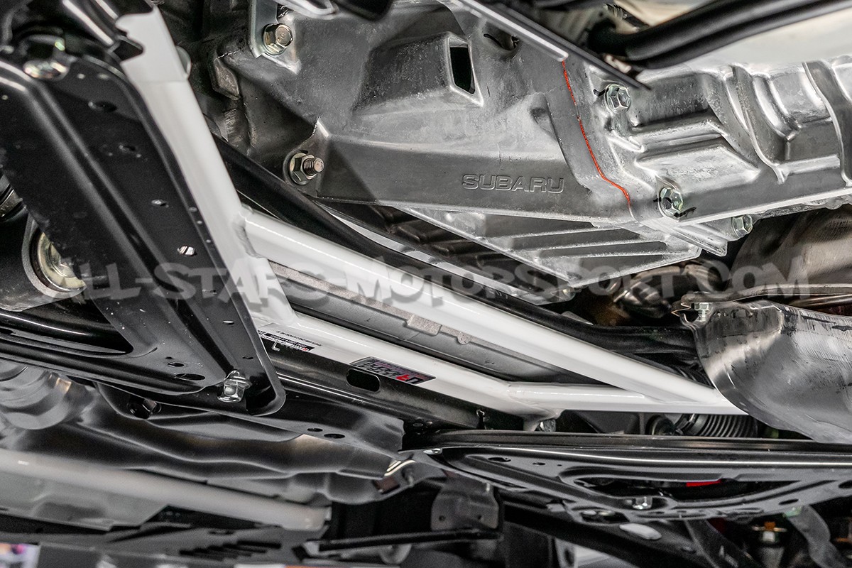 S'installant sans aucune modification afin de rigidifier le train avant des Toyota GT86 / Subaru BRZ ZC6, cette barre de renfort inférieure 4 points Ultra Racing pour berceau avant dispose d'une structure en acier haute densité résistant à des contraintes extrêmes et d'une finition blanche très qualitative.