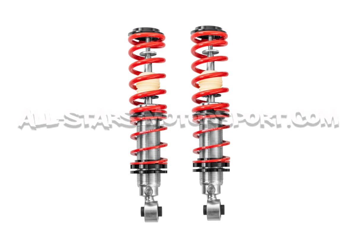 Ce kit de suspension combinés filetés V-MAXX disponible en version X-Street ou X-Sport, destiné aux Mazda MX5 NB, constitut l'un des meilleurs rapport qualité / prix du marché pour un usage route ou piste. Offrant un réglage précis de la hauteur de caisse de -35mm à -65mm, ce kit complet avant / arrière homologué TUV, s'installe sans modifications pour apporter un comportement plus sportif au véhicule mais également pour en améliorer considérablement le look. La version X-Sport propose en plus du règlage en hauteur, un réglable de la dureté sur 24 positions !