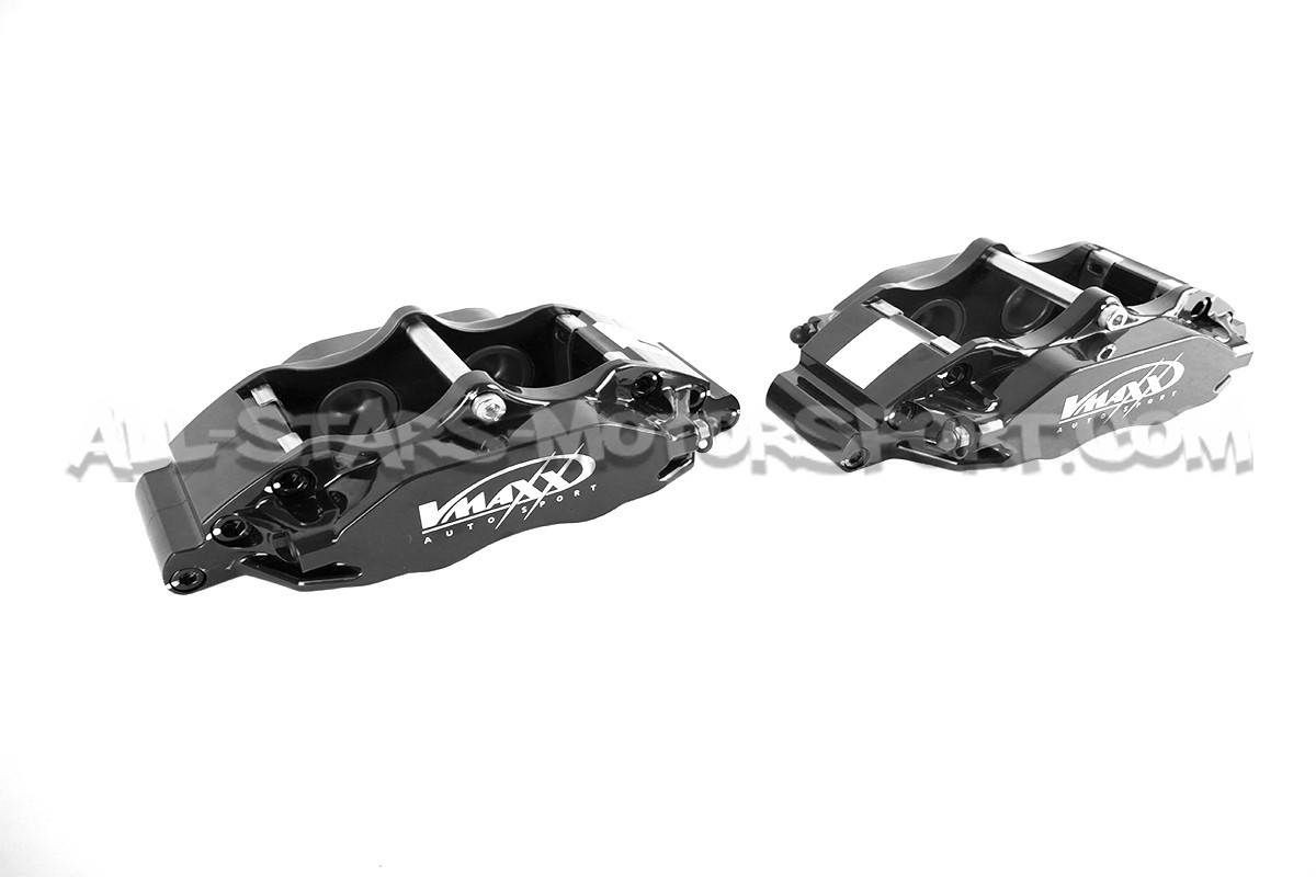 Kit gros frein avant Vmaxx pour Ford Fiesta MK7 ST 180 / 200 comprenant les etriers 4 pistons, les disques sur bol rainurés / ventilés en 290mm, les flexibles de frein aviation, les plaquettes route / sport et tout le nécessaire de montage pour une installation directe sans aucune modification.