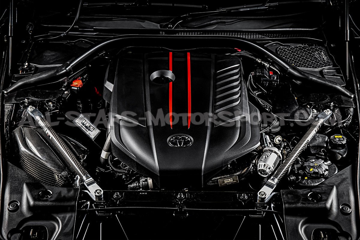 Ce kit de 3 barres de renforts HKS destiné aux Toyota Supra MK5, s'installe sans modification afin de limiter les torsion de caisse mais egalement d'apporter un aspect exclusif au coupé nippon. Fabriqué en fibre de carbone finition brillante, ce kit ce compose de deux barres avants transversales et d'une barre arrière 2 points type harness bar. Elegantes, efficaces et légères, ces barres fabriquées au Japon sont livrées avec leurs instructions et accessoires de montage