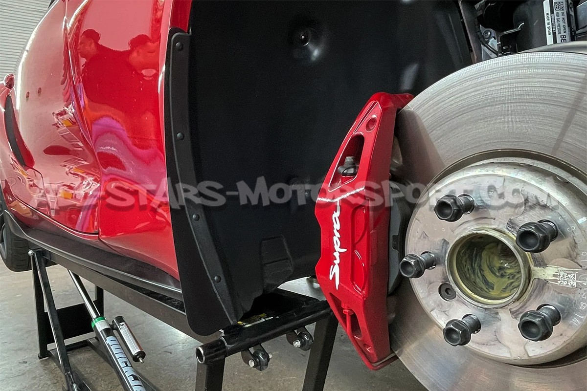 Ce kit d'extensions de passage de roue anti projections Armaspeed s'installe sans aucune modification sur les garde-boue de serie des Toyota Supra Mk5 A90 afin de limiter les projections pouvant abimer les parties peintes de la carrosserie. Livré avec son kit de montage specifique, cet ensemble de 4 pieces (avant/arrière et droite/gauche) apportera en plus d'une protection efficace, un look plus sportif au coupé Toyota.