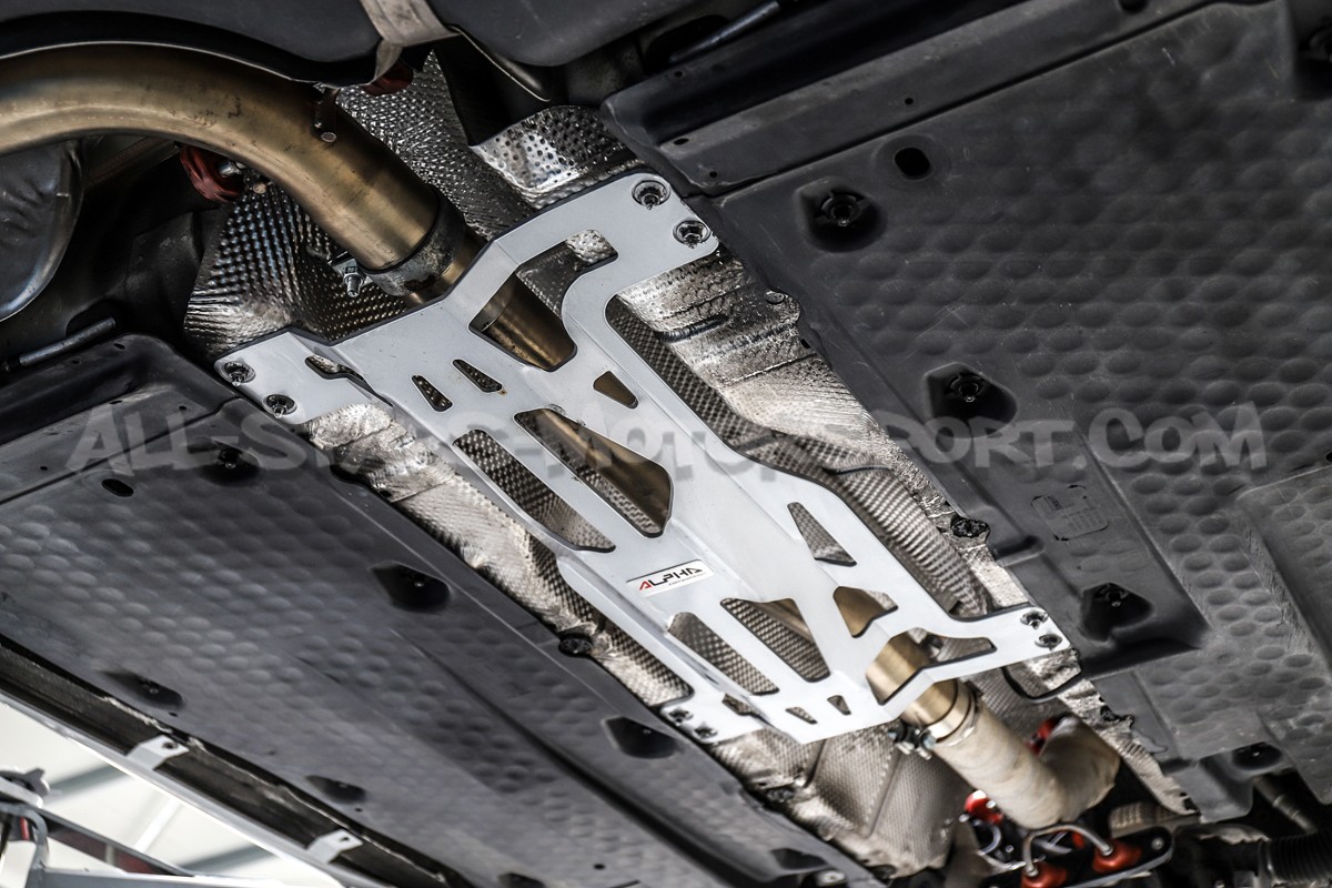 Reprenant les points de fixation de serie, cette barre de renfort inférieure centrale Alpha Competition s'installe sans modification, en rempalcement direct des barres d'origine, afin d'apporter plus de rigidité au chassis des S3 8P / Leon 2 / Octavia 1Z / Golf 5 / Golf 6 ou Scirocco. Disposant d'une structure en aluminium haute densité, ce renfort inférieur 220% plus resistant, permet de minimiser les torsions pour un chassis plus réactif et efficace en conduite sportive !