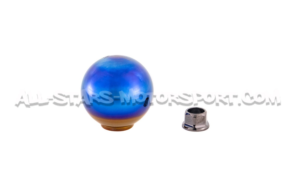 Fabriqué à la main à partir de titane pure, ce pommeau de levier de vitesse J's Racing s'installe en remplacement direct de celui de serie sur les Honda Civic / S2000 ou Integra équipées de pommeau vissés. Avec sa finition bleutée typique du titane chauffé, ce pommeau de 240grs apportera un look unique à l'habitacle mais également une prise en main très agréable au pilote.