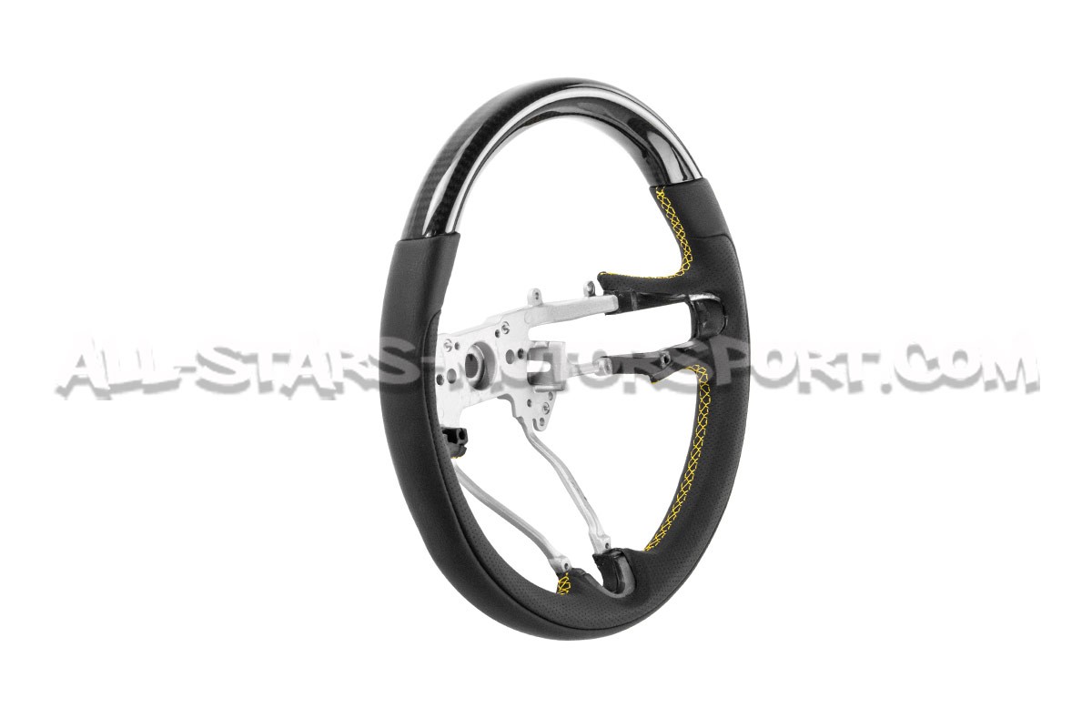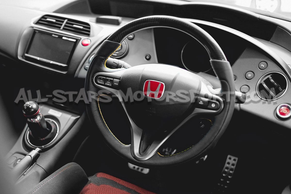 Remplacement direct du volant équipant de serie les Honda Civic Type R FN2, ce volant sport J's Racing est conçu pour offrir une prise en main à la fois confortable et efficace. Fabriqué à la main au Japon, ce volant de 350mm de diamètre mélange la fibre de carbone et le cuir noir pour un aspect esthétique à la fois moderne et épuré.