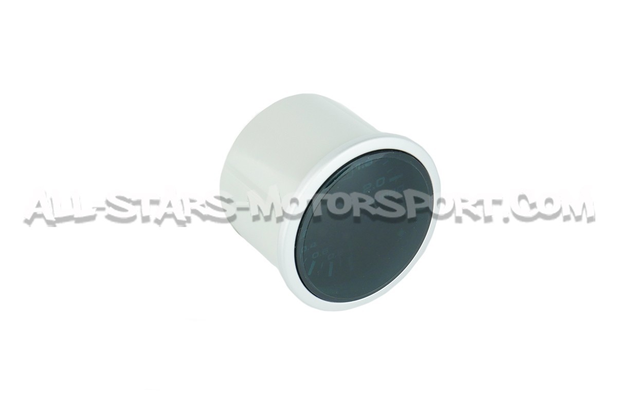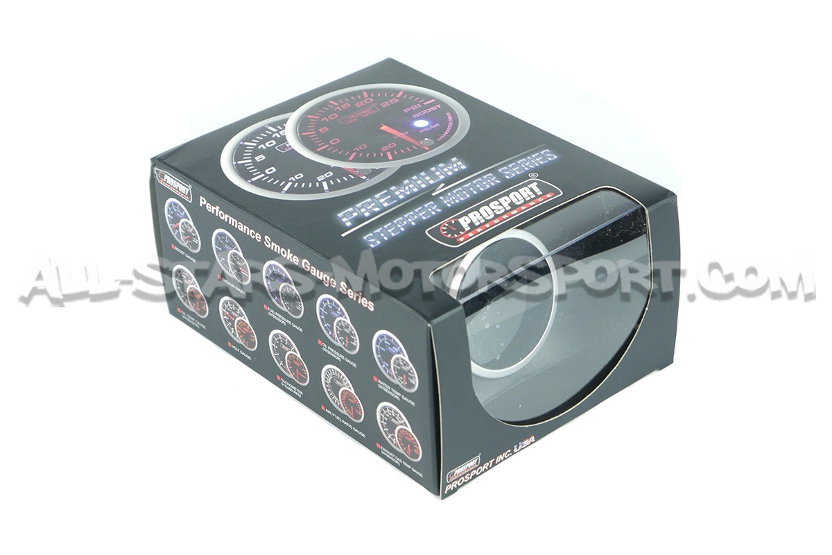 Manomètre de pression de turbo éléctronique Prosport 216BF en 52mm fond noir avec retro éclairage vert ou blanc. La pression est analysée via un capteur déporté avant d'être transmise au manomètre permettant ainsi un affichage précis et stabilisé !