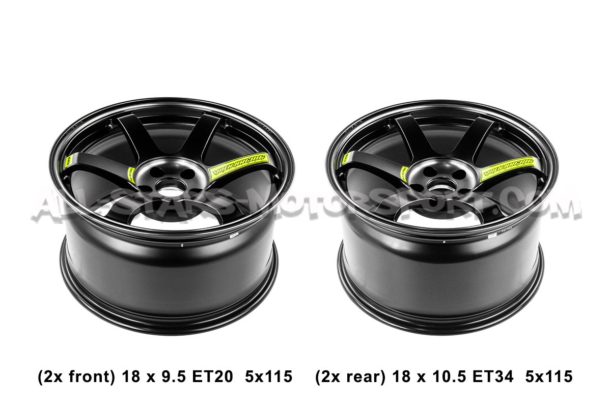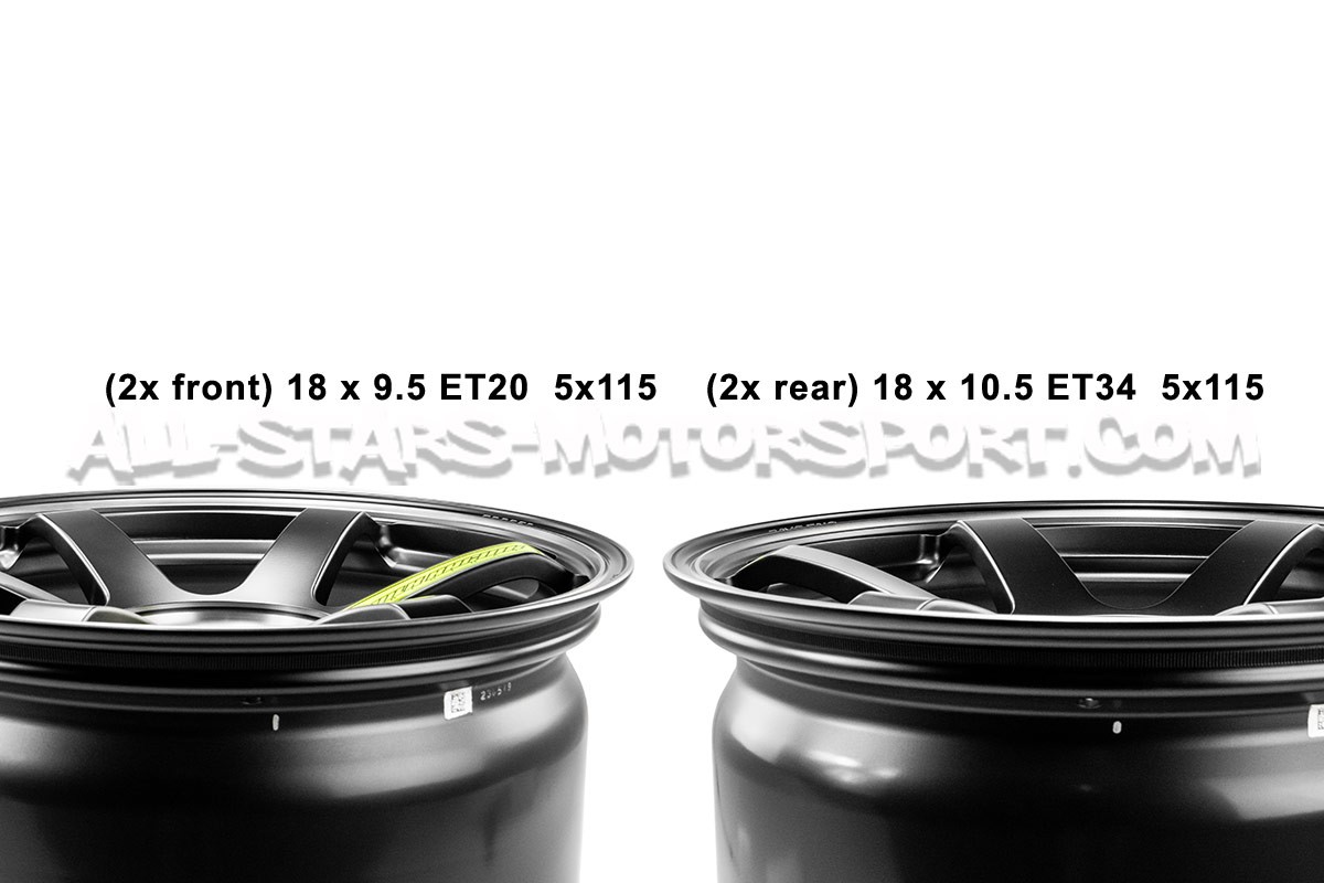 Forgées à partir d'un alliage d'aluminium solide et ultra léger, les jantes Volk Racing TE37 SL Saga M-SPEC sont parmi les plus legères du marché grace à la qualité des materiaux et des techniques de fabrication utilisés. Présentées ici en 9.5 x 18 ET20 pour l'avant et 10.5 x 18 ET34 pour l'arrière avec un perçage en 5 x 112, cette edition limité de la mythique TE37 dispose d'une finition Pressed Black exclusive et de dimensions idéales pour un montage agressif sur les Toyota Supra Mk5 A90