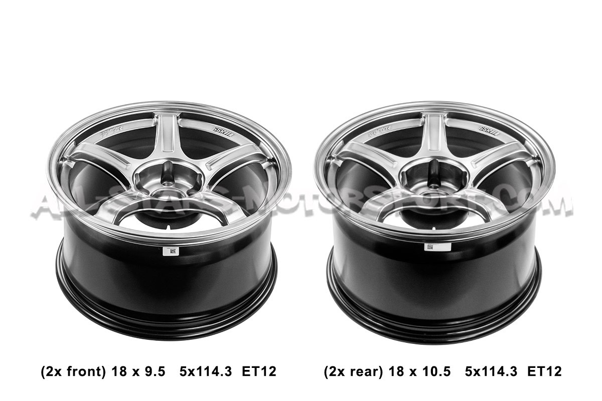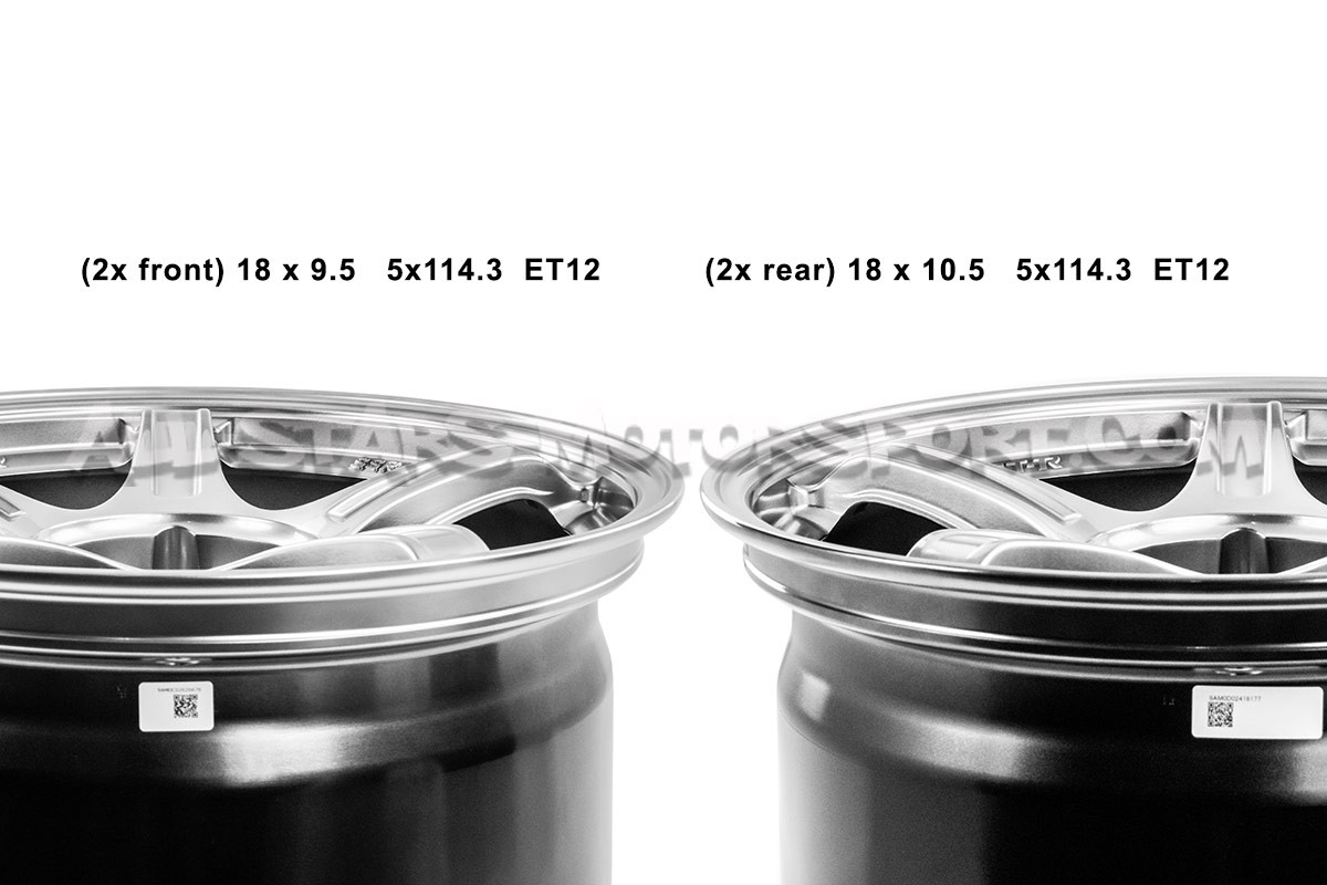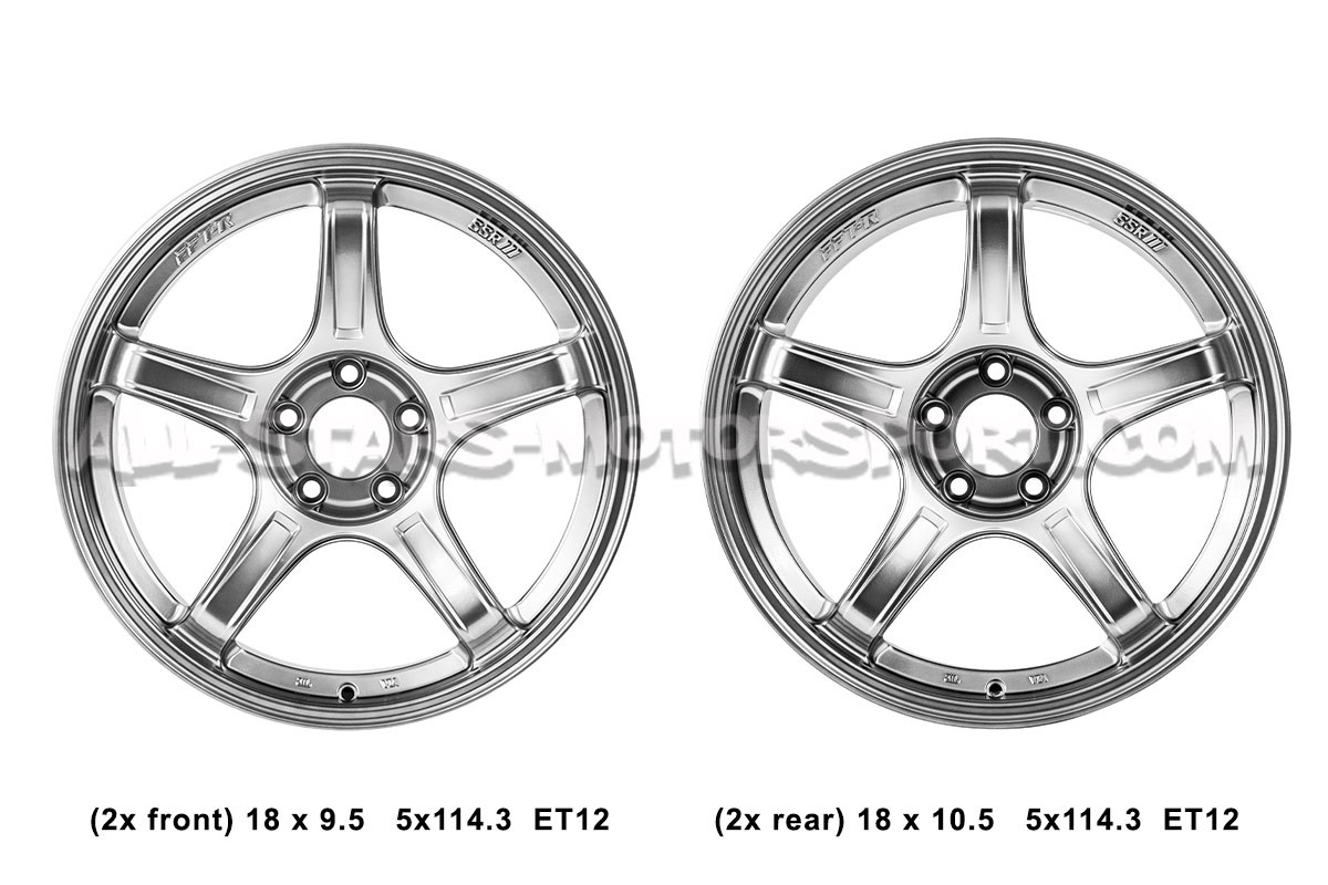 Forgées à partir d'un alliage d'aluminium solide et ultra léger, les jantes SSR GTX03 disposent d'un design intemporel et d'une qualité de fabrication Flow Forming exemplaire. Présentées ici en 9.5 x 18 ET12 pour l'avant et 10.5 x18 ET12 pour l'arriere avec un perçage en 5 x 114.3, ces jantes disposent d'une finition silver exclusive et de dimensions idéales pour un montage agressif sur les Nissan 350Z ou Nissan 370Z