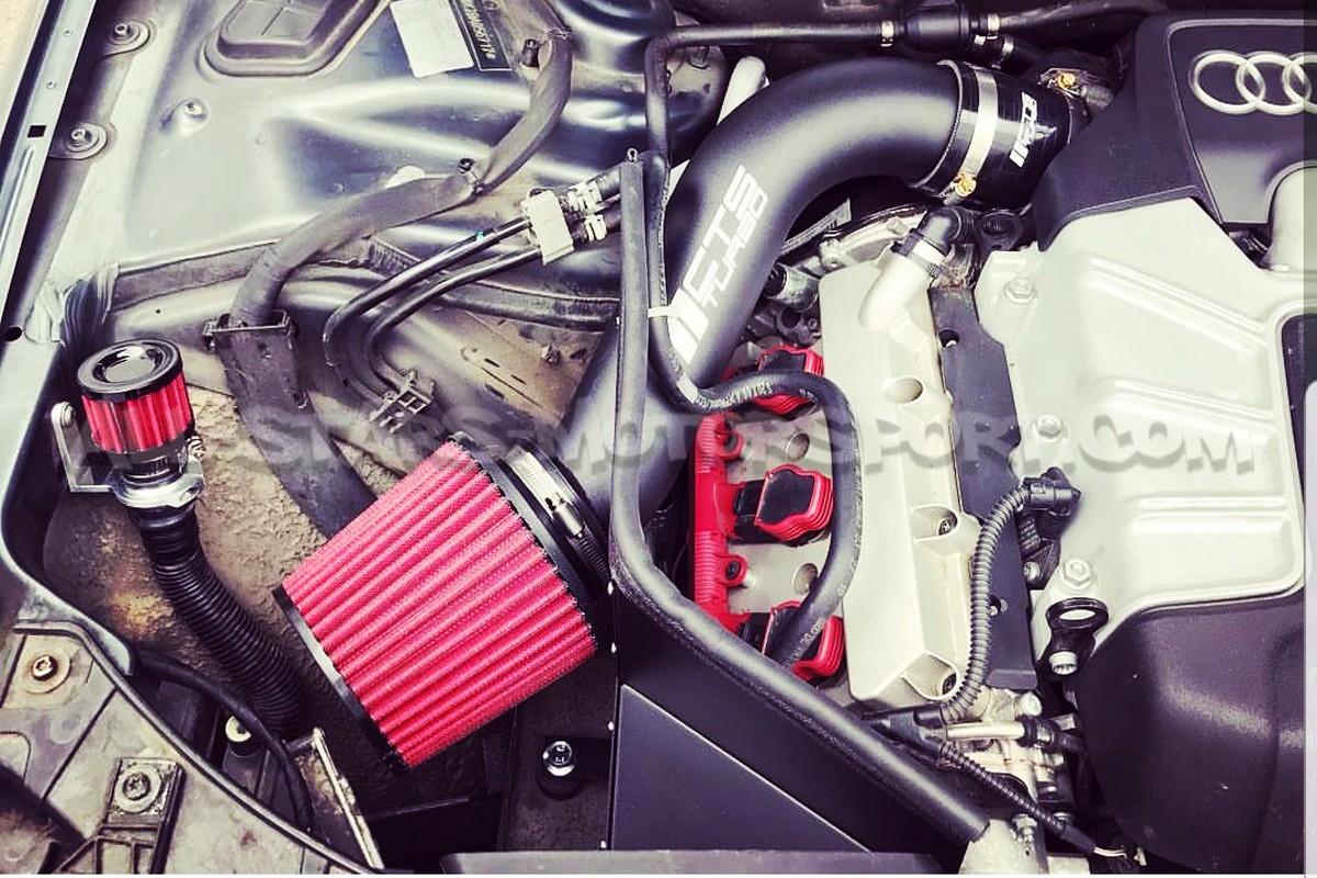 L'admission CTS Turbo pour Audi S4 et S5 3.0 TFSI est sans aucun doute l'une des meilleures et plus complète du marché. Elle fonctionne avec l'excellent diffuseur d'air de serie et se compose d'un filtre multi couches synthétique lavable et réutilisable, d'un conduit d'admission gros volume en aluminium noir et d'un pare chaleur en aluminium qui permet à la fois d'isoler le filtre de la chaleur du moteur mais également de créer un espace de rotation d'air bien supérieur a celui proposé par les autres boites a air du marché ! Le gain mesuré sur banc pour cette admission est de l'ordre de 8cv sur base totalement d'origine.