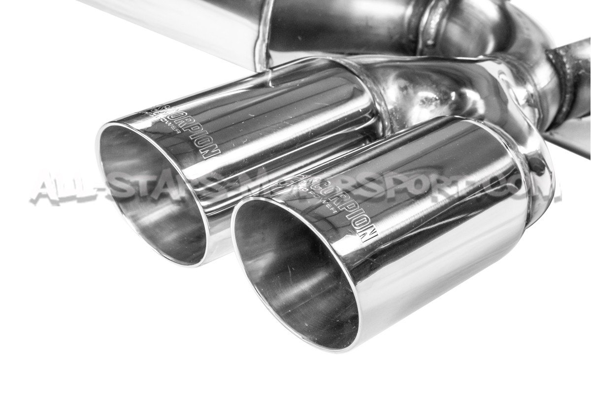Echappement après catalyseur tout inox Scorpion en diamètre 2.5" / 63 mm, s'installant sans aucune modification. Ce catback est disponible avec des embouts en finition polie de 83mm et avec un tube central équipé d'un résonateur.