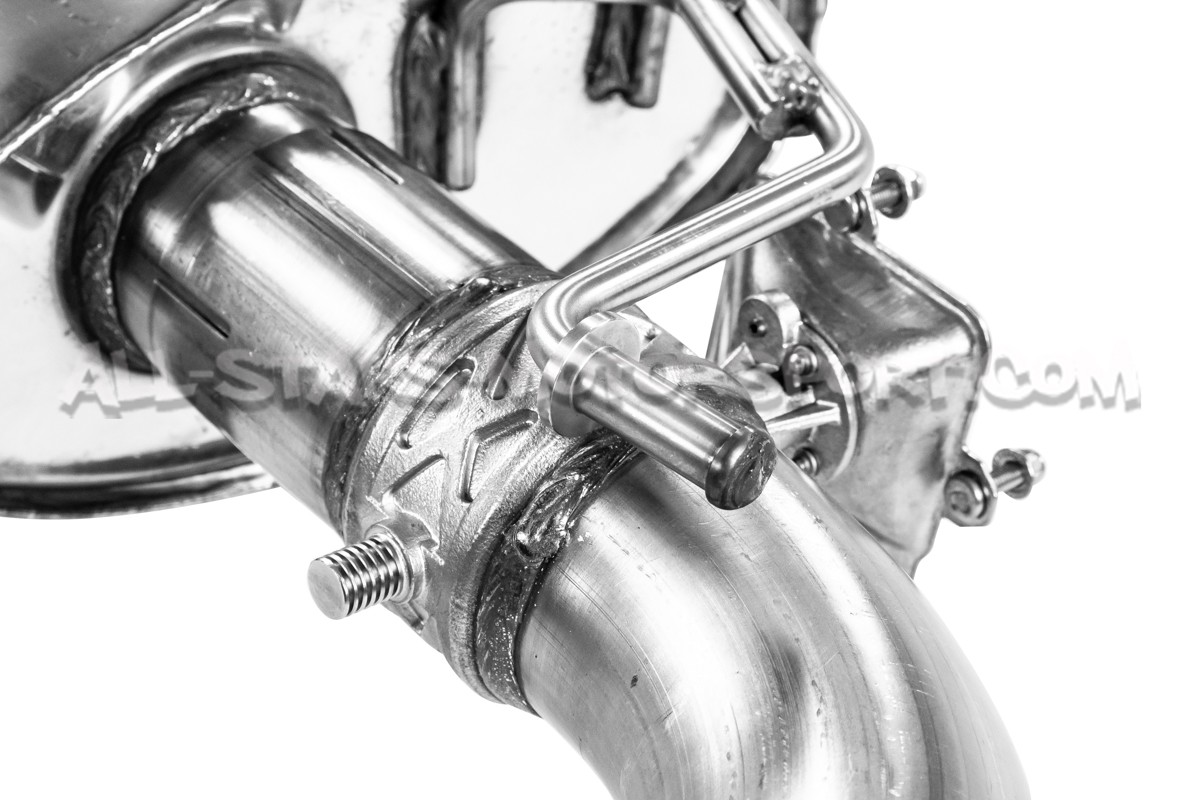 Cet échappement catback Scorpion, fabriqué à partir de tubes d'inox haute qualité de 3" / 76mm de diamètre, s'installe sans modifications a partir de la descente de turbo sur les Mercedes Benz A45 AMG W176. Equipé de valves actives fonctionnant avec les différents modes de conduite du véhicule et d'un tube central avec ou sans resonateur, permettant une reduction du bourdonnement à régime stabilisé, cet échappement Scorpion est concu pour apporter une sonorité agressive au moteur 2.0T.
