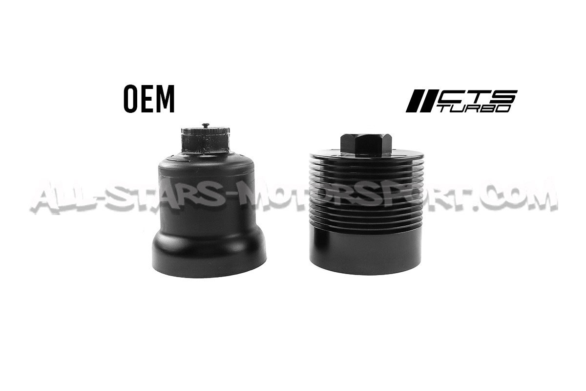 Le boitier de filtre a huile en aluminium noir CTS Turbo n'est pas qu'un détail esthétique pour les moteurs 2.0 TFSI EA113 mais également une source de fiabilité remplaçant celui de série en plastique, particulièrement fragile, afin d'optimiser la dissipation thermique, cette pièce en aluminium usinée puis anodisée en noir brillant assurera un look clean et sobre a votre moteur durant toute la durée de vie de ce dernier !