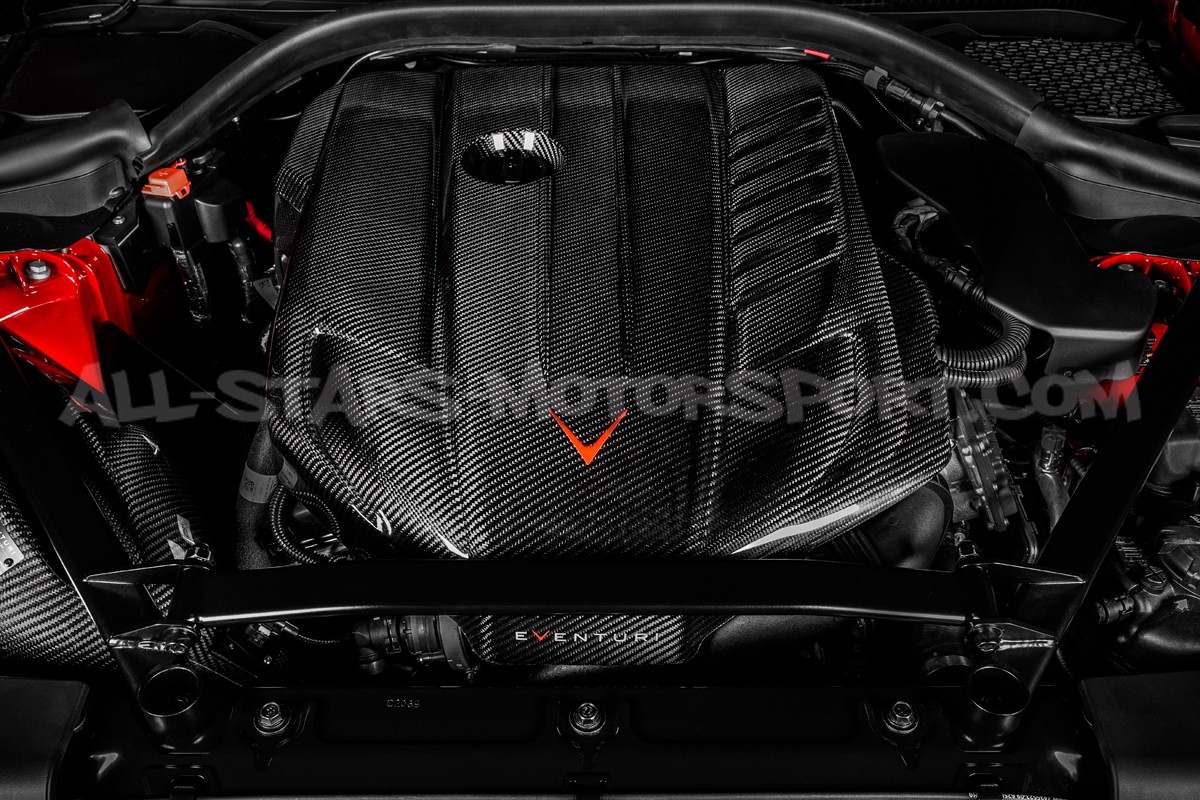 Ce couvre moteur Eventuri en fibre de carbone s'installe en replacement direct de celui de série afin d'apporter une touche sport / chic a la baie moteur des Toyota Supra A90 ! Complément esthétique parfait de l'admission de la marque, il dispose de la même finition que tous les produits Eventuri