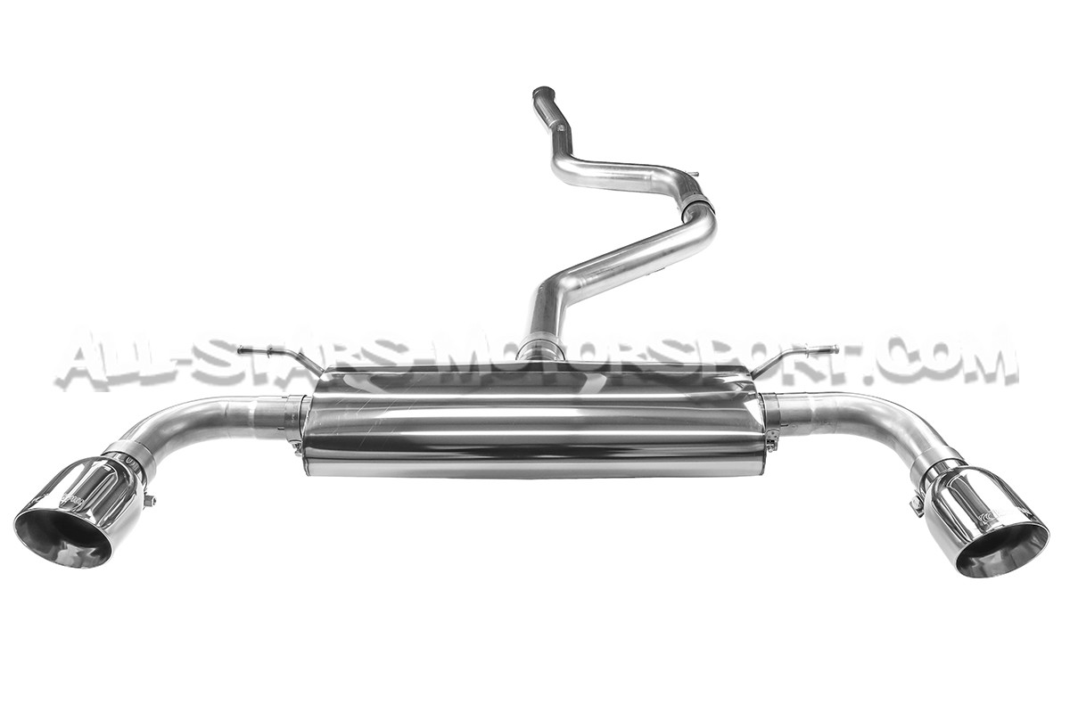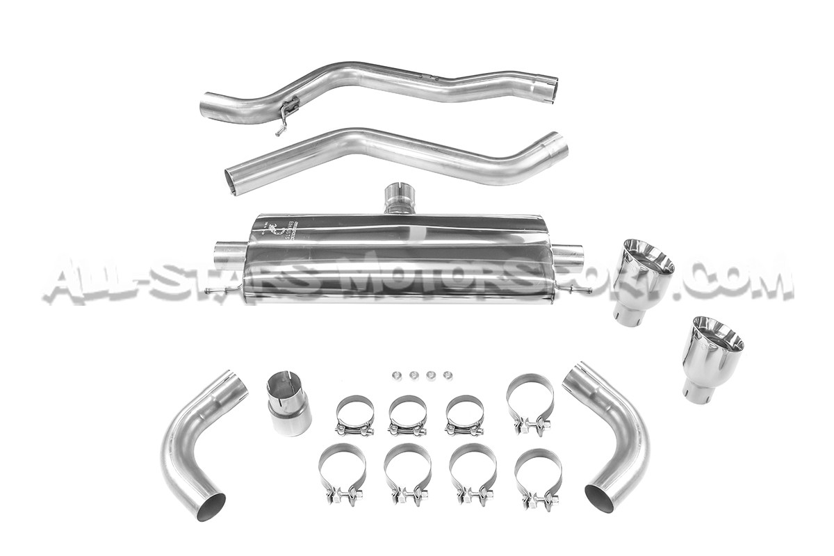Echappement tout inox Scorpion en diamètre 3" / 76mm avec embouts Daytona en finition polie ou noire de 114mm, s'installant sans aucune modification a partir du catalyseur (GPF) sur les Ford Focus Mk4 ST 280