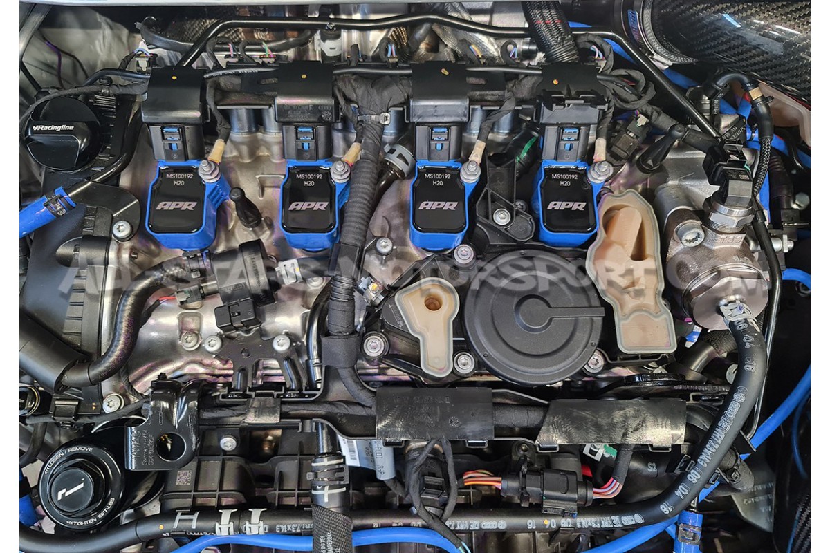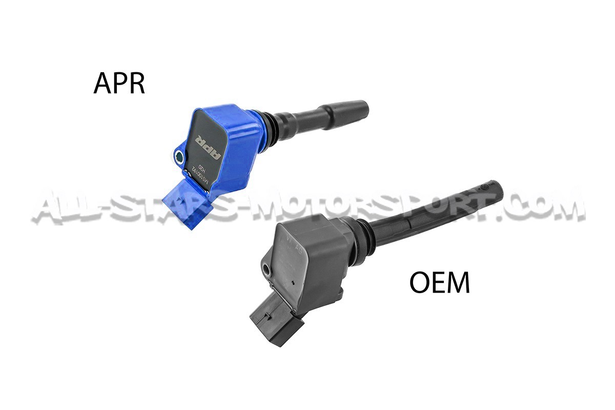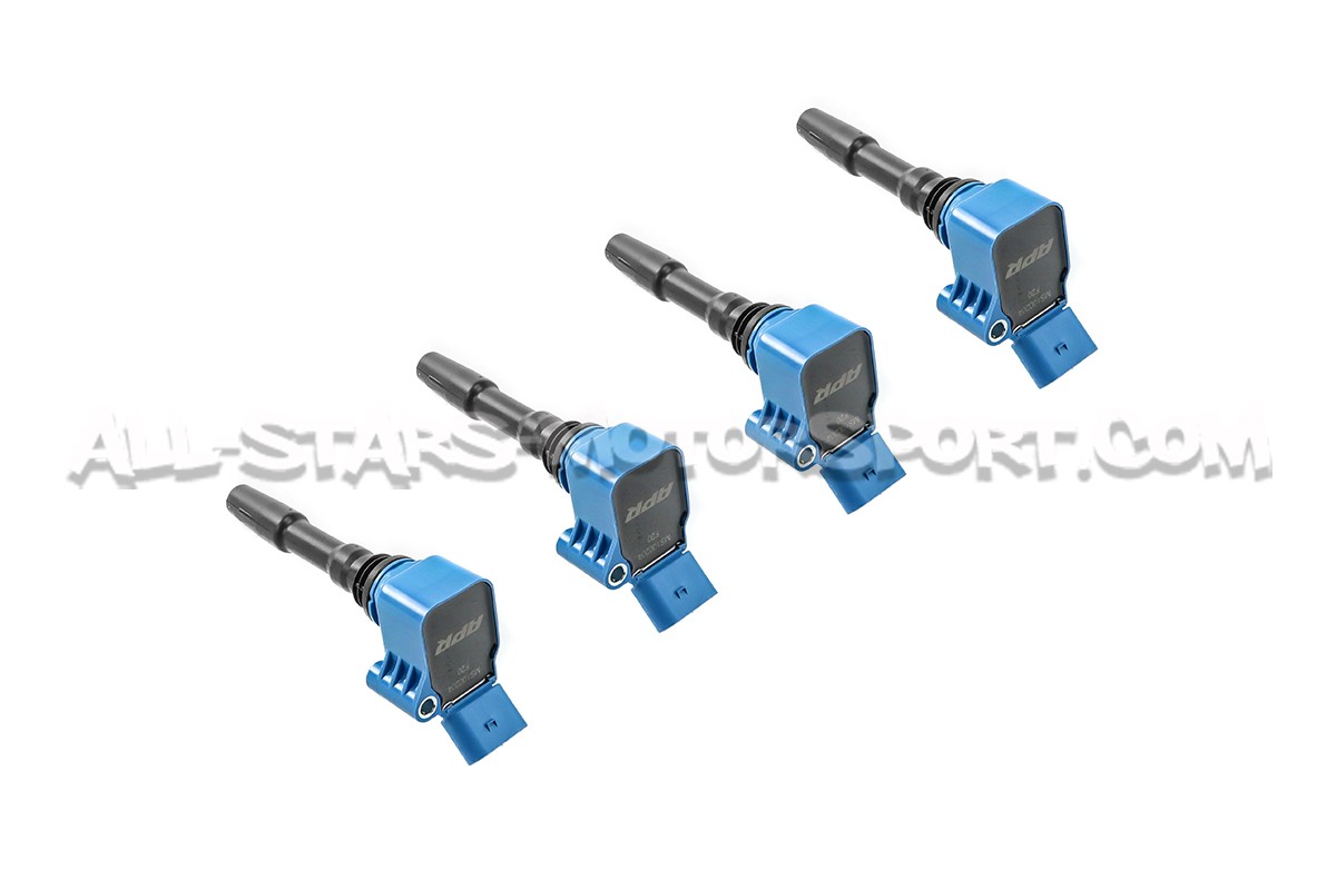 Les bobines d’allumage APR haute performance constituent l'une des évolutions les plus simples a mettre en place sur les moteurs 1.8 / 2.0 TFSI EA888.3 / EA888.4 du groupe VAG équipant entre autre les Leon 3 Cupra / Golf 7 R / Golf 8 GTI ou TT 8S / S3 8V / S3 8Y. Vendu en pack de 4 bobines, s'installant en remplacement direct des bobines de série, elles permettent d'obtenir à la fois un allumage plus stable et puissant mais également un look plus racé !