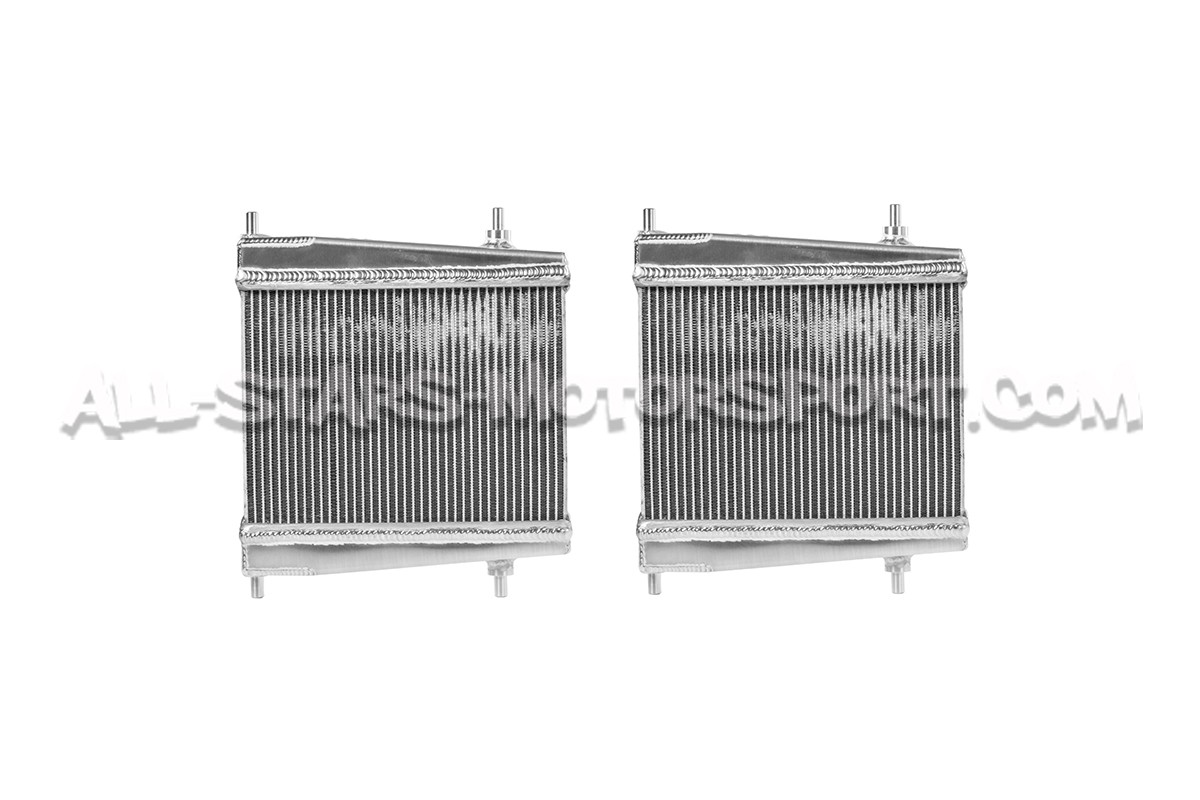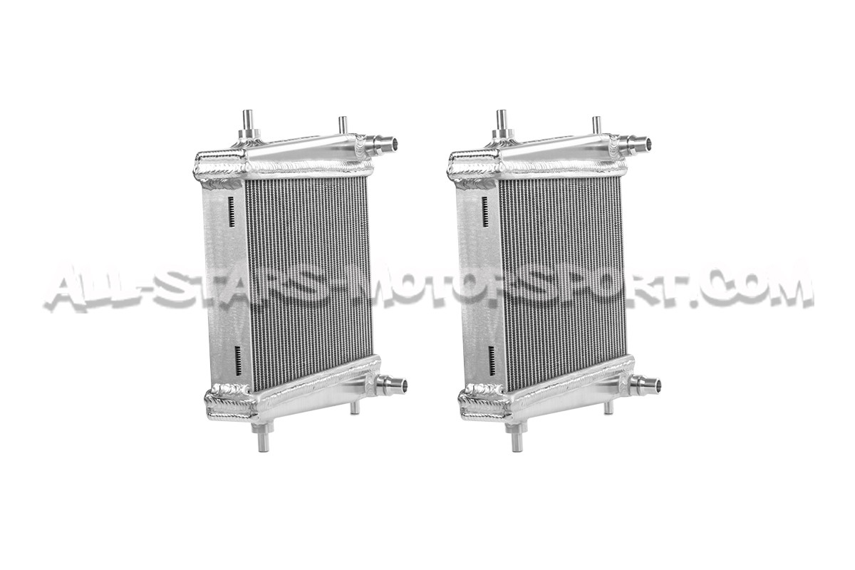 Ces radiateurs auxiliaires fabriqués en aluminium par Mishimoto s'installent en remplacement direct des l'éléments de série sur les Toyota Supra GR A90 Mk5 3.0T. Disposant d'un volume 30% plus important que ceux d'origine, ces radiateurs latéraux gros volume permettent d'optimiser le refroidissement du moteur B58 sur route comme sur piste et ce quelque soit son niveau de préparation !