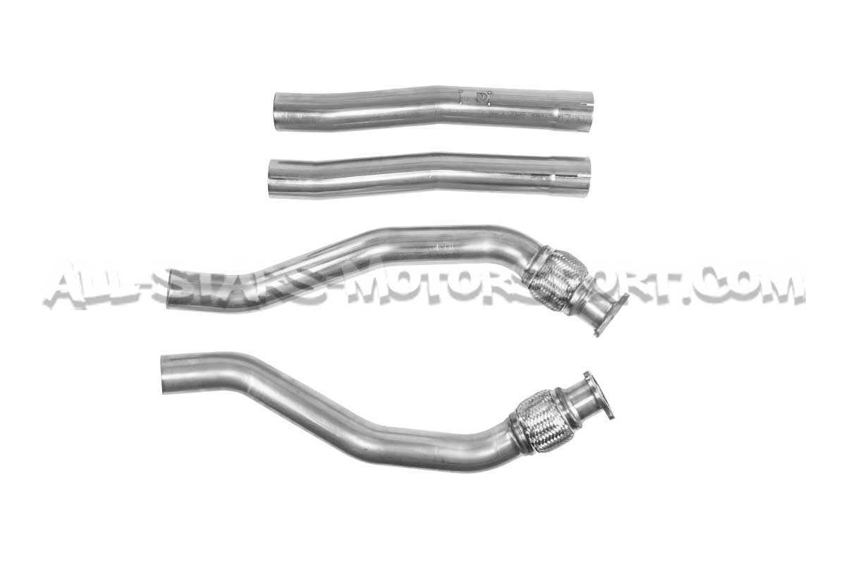 Ce kit Scorpion composé de tubes d'inox T304 de 2.75" / 70mm de diamètre et de son kit de montage, s'installe en lieu et place des résonateurs avant de série sur les échappements des Audi RS6 C7 et RS7 C7 afin de modifier significativement la sonorité du moteur 4.0 TFSI.