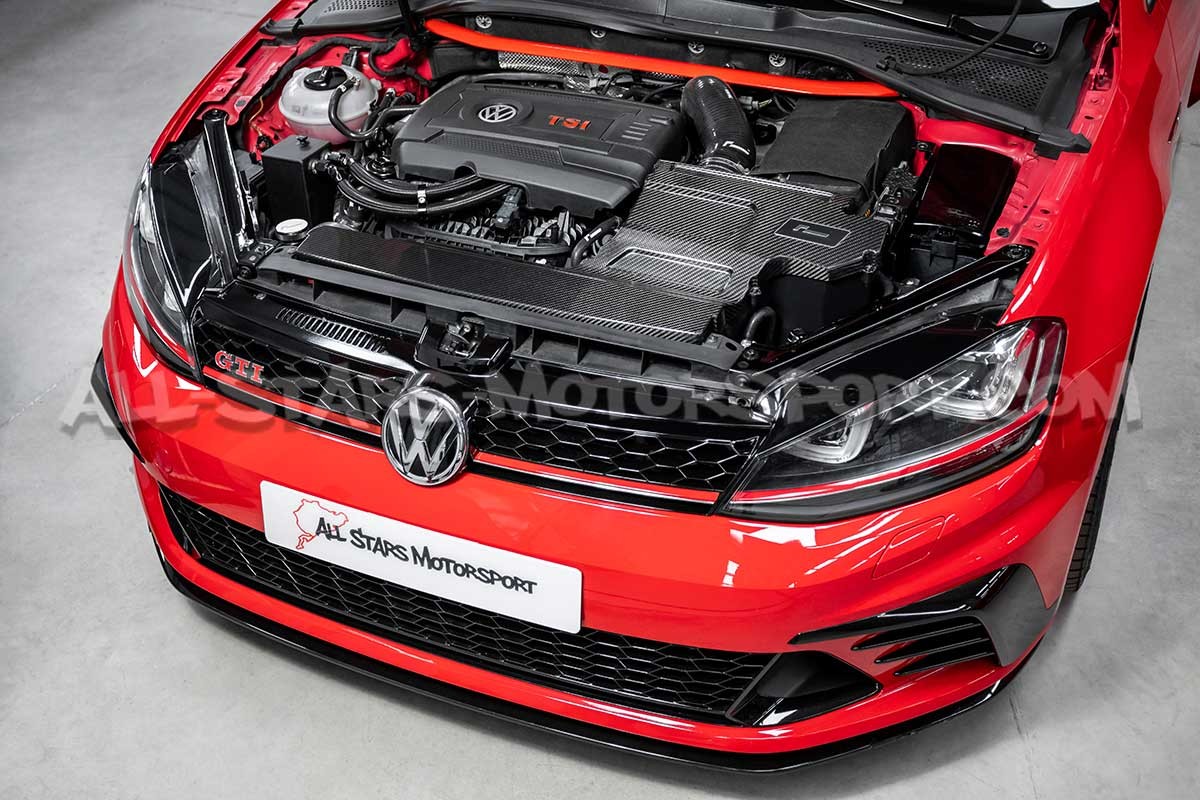 Evolution esthétique ultime, ce capot en fibre de carbone disponible en finition matte ou brillante, s'installe sans aucune modification en remplacement direct du couvercle en plastique des admissions Racingline R600 destinées aux moteurs 1.8 / 2.0 TFSI EA888.3 des plateformes MQB telles que les Audi S3 8V / Leon 3 Cupra, TT 8S ou Golf 7 R.