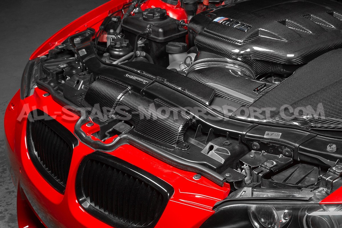 Le système d'admission Eventuri déstiné aux moteurs S65 des BMW M3 E9x est devenu au fil du temps la référence absolue pour ce modèle et, c'est afin de compléter cette gamme, qu'Eventuri propose désormais ces diffuseurs d'air reliant la face avant à la boite à air. S'installant sans modifications, ce diffuseur en 2 parties optimisera les flux d'air depuis les calandres, tout en apportant un aspect esthétique sportif et luxueux à la baie moteur !