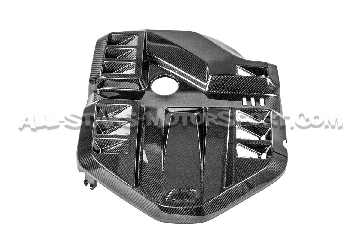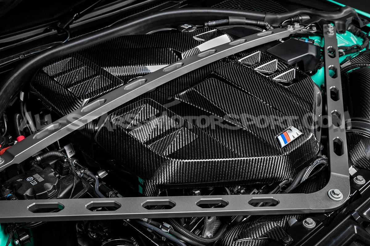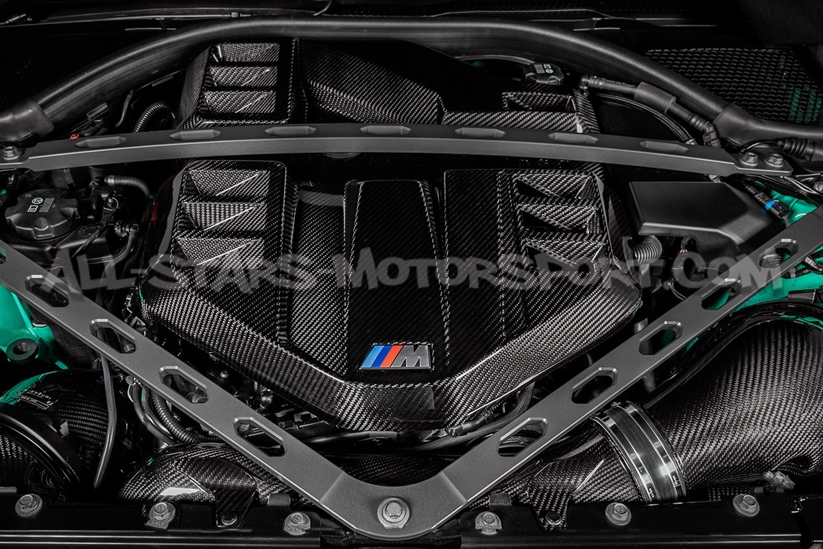 Ce couvre moteur Eventuri en fibre de carbone finition brillante ou mate, s'installe en replacement direct de celui de série afin d'apporter une touche sport / chic à la baie moteur des BMW M3 G80 / M4 G8x et M2 G87 ! Complément esthétique parfait pour l'admission de la marque, il dispose de la même finition que tous les produits Eventuri